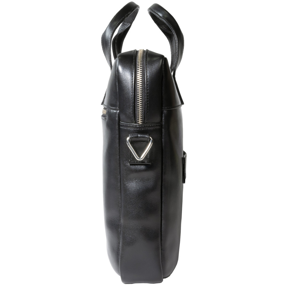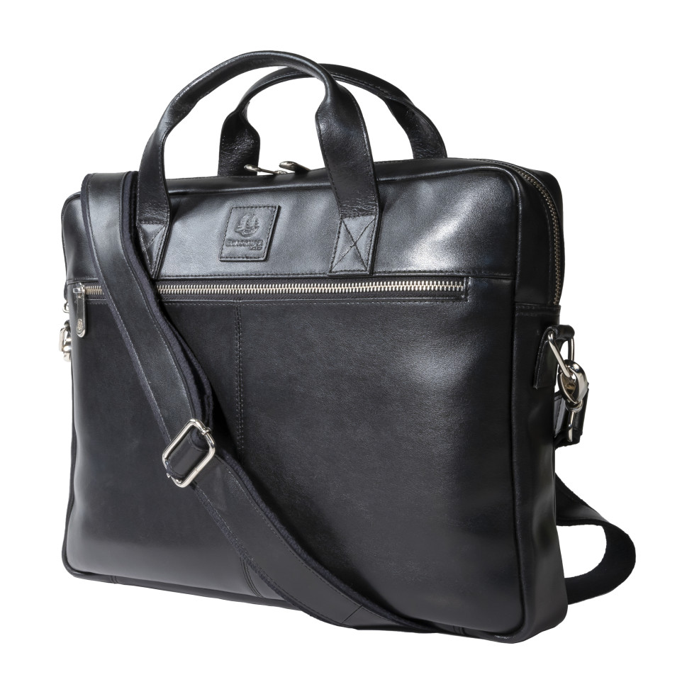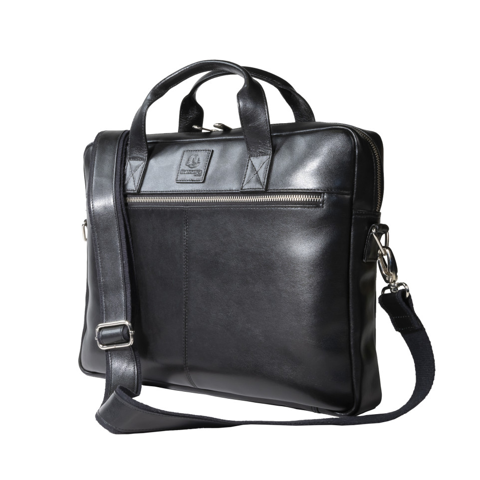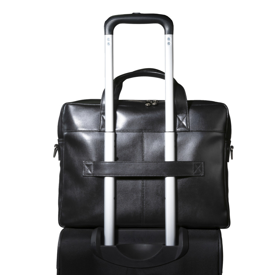 Sacoche ordinateur Exactive Cuir noir Dans la lignée du style sobre et élégant de la gamme Exactive, la bagagerie cuir séduira les actifs qui cherchent la qualité et le chic au meilleur prix. En cuir vachette, matière haut de gamme, résistante à l'eau comme à l'usure, la sacoche Exactive Cuir présente un style épuré pour t ransporter l'indispensable. A l'intérieur la sacoche est équipée d'une poche renforcée et fermée adaptée aux ordinateurs portables jusque 15,6, un compartiment pour transporter les dossiers, de nombreux emplacements pour ranger stylos et cartes, mais aussi 2 poches dont une fermée pour les smartphones, et enfin une large poche zip pour les objets précieux ou en vrac. A l'extérieur la sacoche présente également une large poche fermée avec zip. Elle dispose d'un passant au dos pour glisser la sacoche sur une poignée télescopique de bagage. Avec sa poignée confortable, la sacoche peut être portée à la main, mais également sur l'épaule grâce à sa bandoulière amovible réglable.
