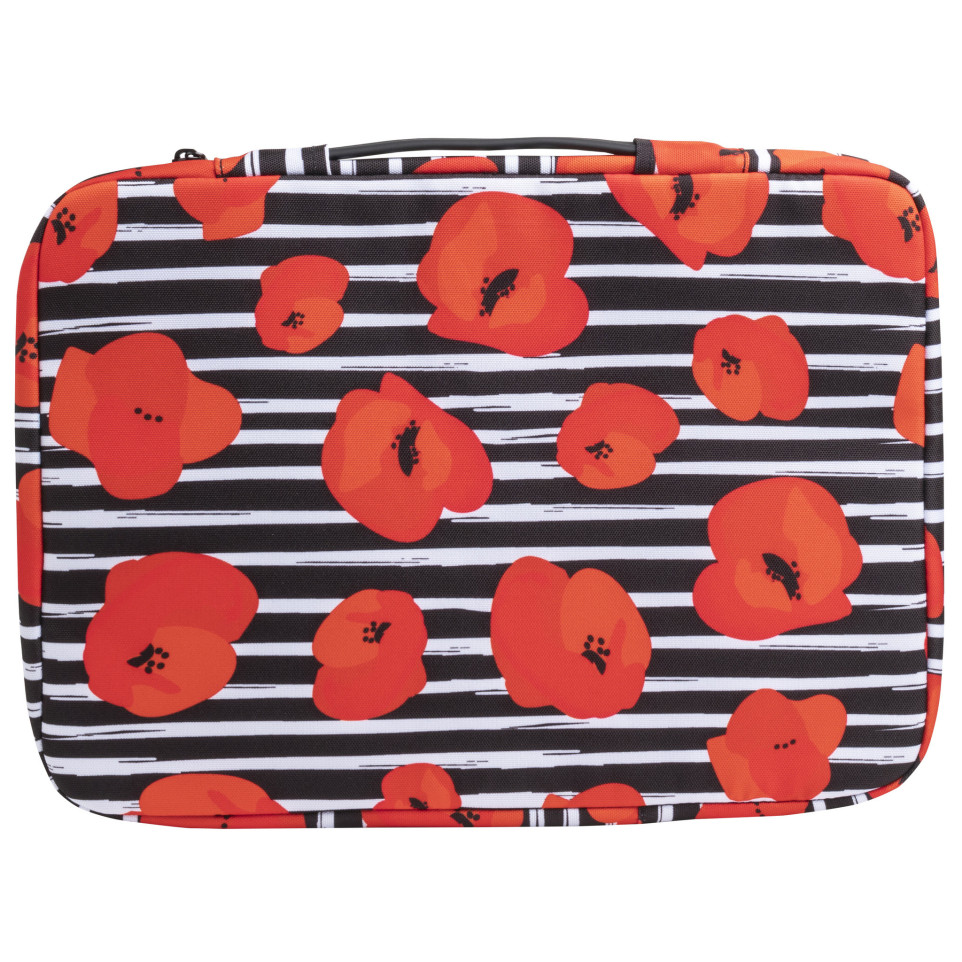 Housse ordinateur 15-16'' Motif Coquelicot Fine et légère, cette housse se glisse facilement dans un sac ou une valise et protège votre ordinateur comme une seconde peau. De format intérieur 39 x 28 x2 cm (taille extérieure 41 x 31 x2,5 cm), elle est compatible avec tout ordinateur portable standard de 15 à 16 pouces. Finitions soignées : poignée rétractable pour une bonne prise en main, rembourrage intérieur en mousse (même dans les angles et sur les cotés où les risques de choc sont plus importants), et élastique intérieur siliconé pour un parfait maintien de l'ordinateur, quelle que soit sa taille. Petite poche à l'avant et fermeture zippée sur 2 cotés seulement pour éviter de faire tomber l'ordinateur en ouvrant la housse trop rapidement. Fabriqué à partir du recyclage de 7 bouteilles en plastique, cette housse contient 58% de polyester recyclé post-consommation (rPET).