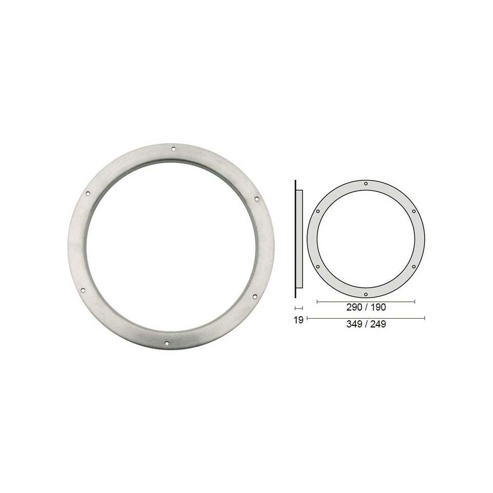 Hublot inox de base Ø190mm conçu pour être fixé sur une porte intérieure, s’intégrant harmonieusement dans le bois afin d’apporter luminosité et esthétique à vos espaces. Adapté aux portes nécessitant un hublot décoratif et robuste.