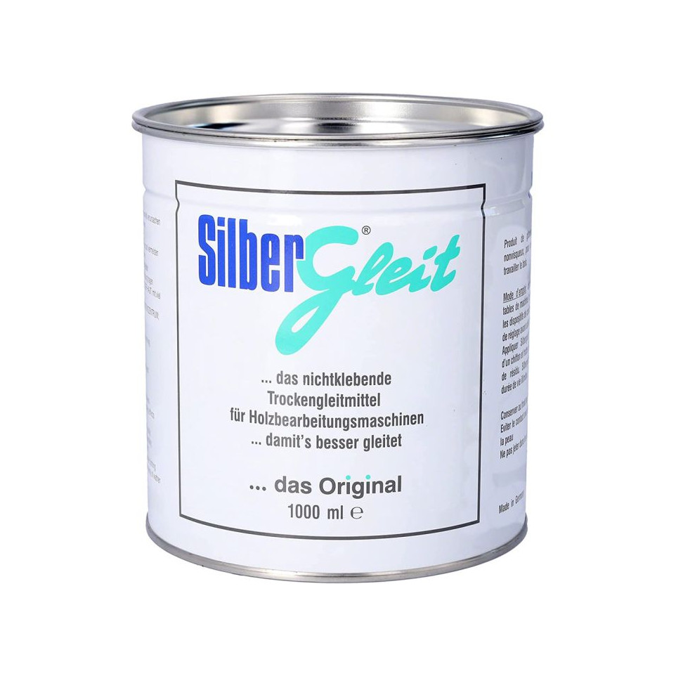 Enduit de glissement Silbergleit en format 1 kg destiné aux machines-outils, idéal pour le travail du bois. Il crée une surface hydrofuge et protège contre la rouille, prolongeant ainsi la durée de vie des équipements.