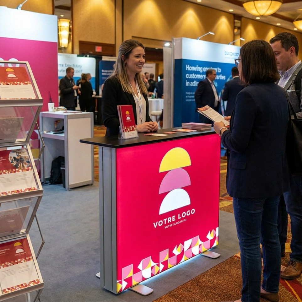 Le visuel textile pour Comptoir Desk Lightbox s’utilise principalement lors de salons professionnels, d’expositions, d’animations commerciales, en magasin ou sur point de vente, ainsi qu’en vitrine ou espace d’accueil. Il se combine idéalement avec des comptoirs lumineux modulaires, des caisses d’éclairage rétroéclairées, des totems publicitaires textiles et d’autres éléments de communication visuelle pour renforcer la visibilité de votre marque dans les environnements événementiels et commerciaux.