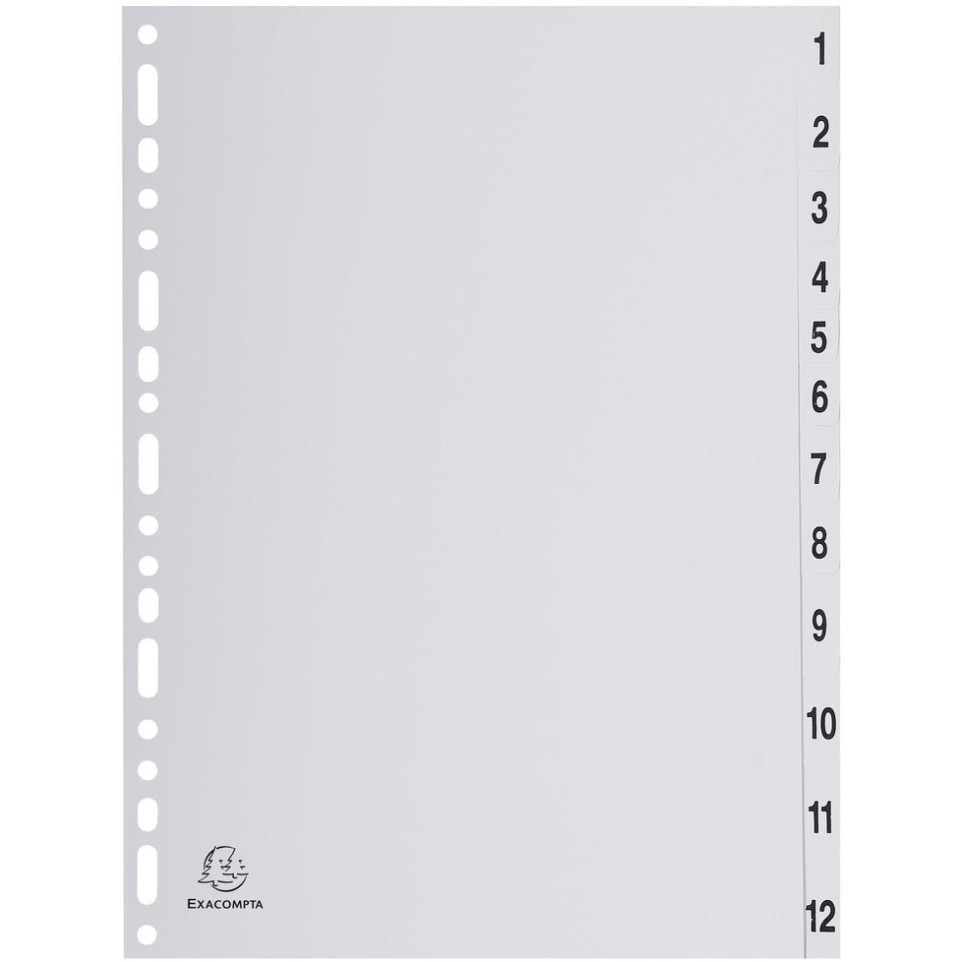 Jeu d’intercalaires numériques Exacompta pour documents au format A4, doté de 12 onglets pour une organisation claire. Idéal pour classer dossiers, projets ou archives dans des classeurs standards au bureau ou à la maison.