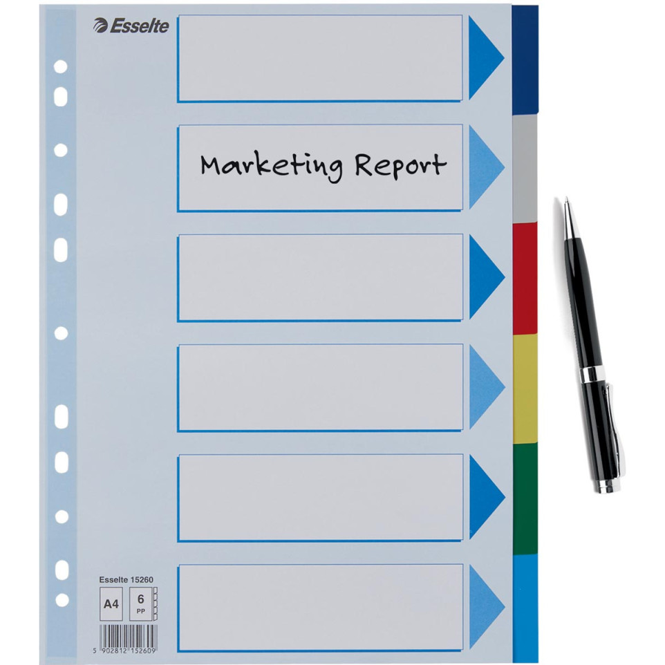 Les intercalaires Esselte 6 onglets permettent d’organiser et de séparer efficacement vos documents au format A4, que ce soit à la maison, au bureau ou à l’école. Idéal pour optimiser le classement dans les classeurs et dossiers.