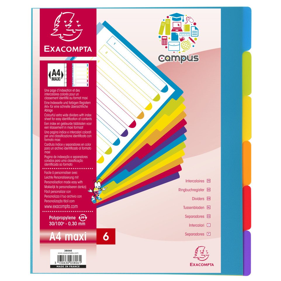 Intercalaires imprimés numériques PP recyclé gris 31 positions - A4 Maxi/ Pce
