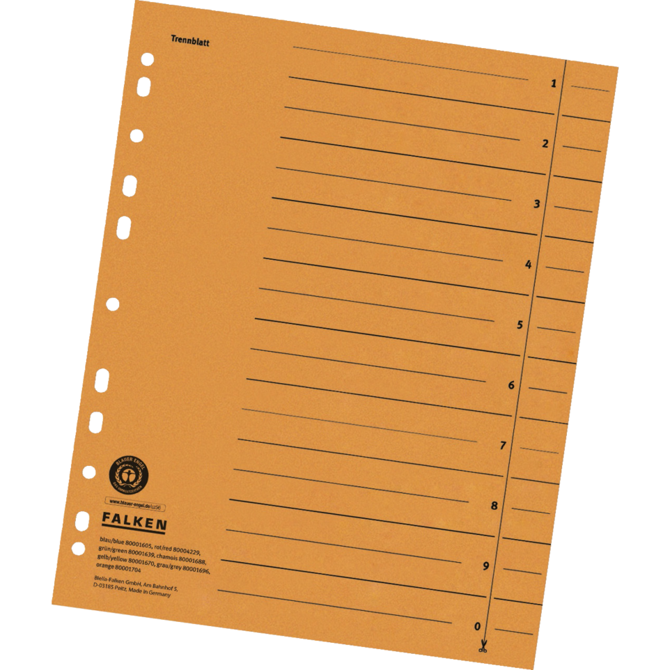 Intercalaires en carte recyclée - Paquet de 100 Intercalaires en carte recyclée et durable pour organiser et trier ses documents au format A4. Longévité assurée grâce aux perforations renforcées. Paquet de 100. Intercalaires au format extra-large 24 x 30 cm. Pré-imprimés pour une meilleure identification du contenu. Fabriqué en Allemagne. Certifié Ange Bleu.