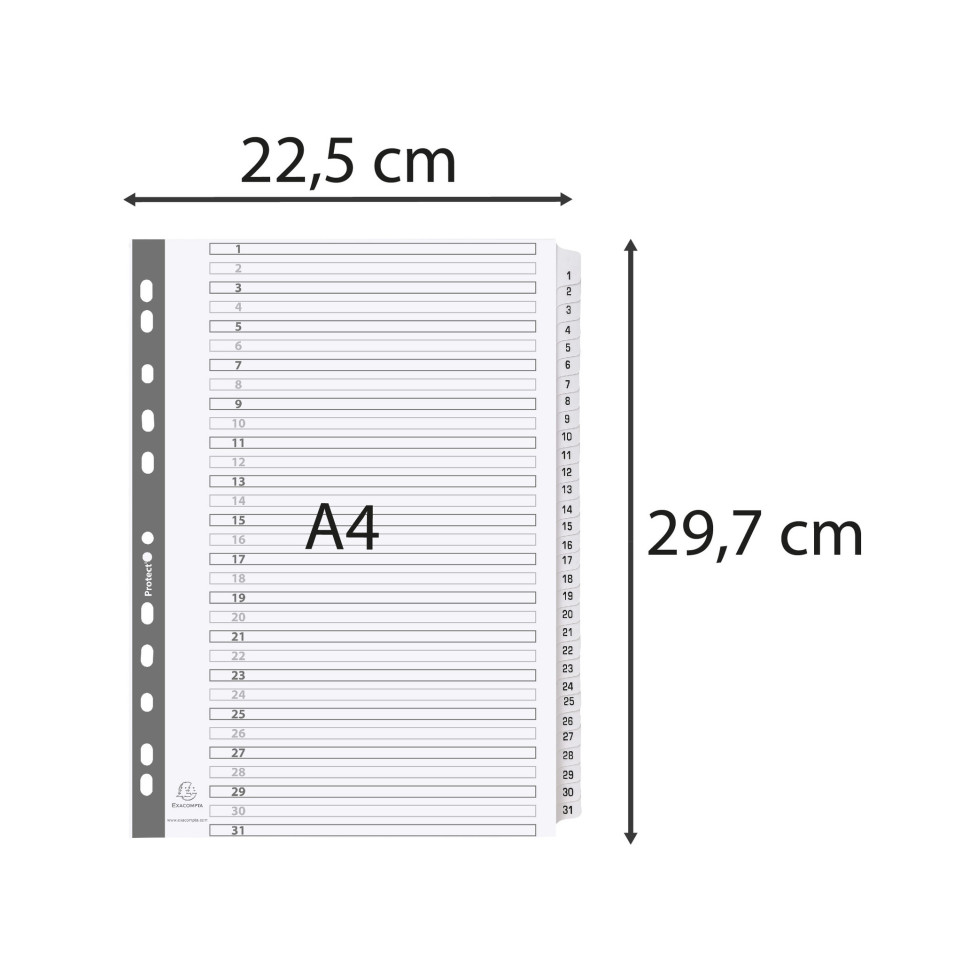 Intercalaires imprimés numériques PP recyclé gris 31 positions - A4 Maxi/ Pce