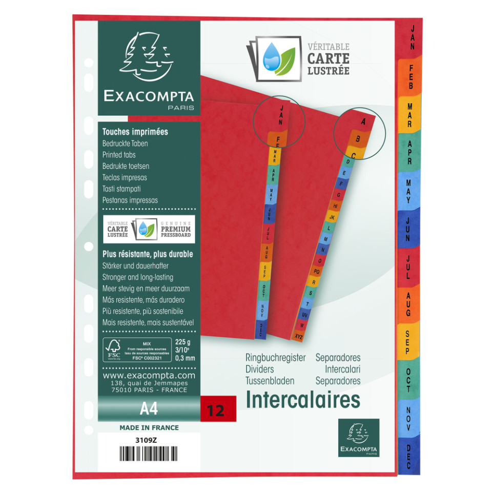 Intercalaires imprimés numériques PP recyclé gris 31 positions - A4 Maxi/ Pce