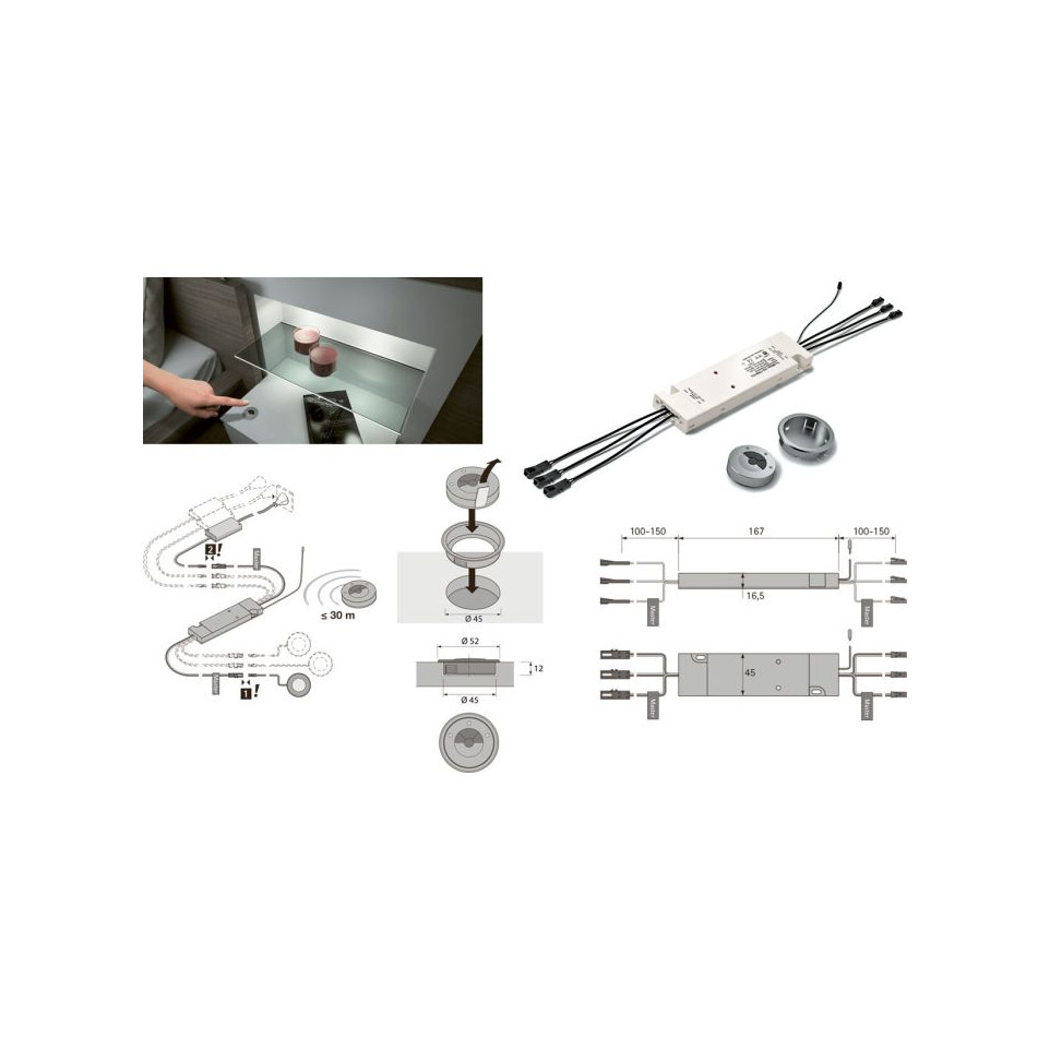 L’utilisateur active ou module les sources lumineuses connectées au meuble par simple pression sur l’émetteur radio manuel. Chaque circuit peut être commuté ou gradé indépendamment, offrant une gestion personnalisée des ambiances. L’appareil est prévu pour une intégration discrète dans les meubles et s’adresse principalement au contrôle de luminaires LED intégrés.
