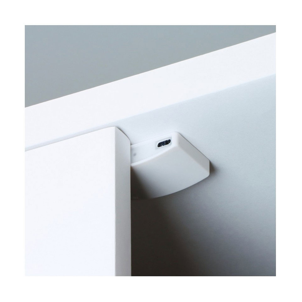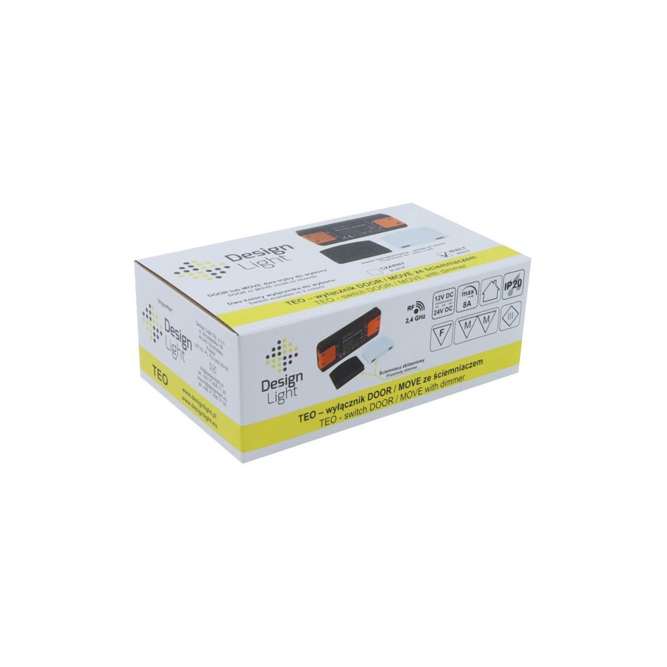 Contrôleur TEO avec capteur double blanc, conçu pour la gestion sans fil de l’éclairage LED 12 ou 24V DC dans les meubles. Solution idéale pour le contrôle pratique et discret de la lumière dans des espaces intérieurs, armoires ou étagères.