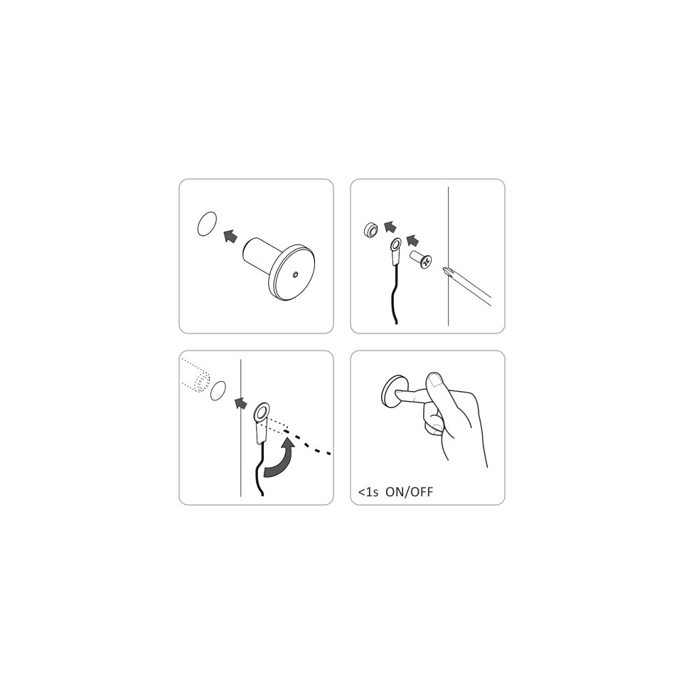 Le contrôleur s’installe entre l’alimentation secteur et le dispositif d’éclairage. Après raccordement et pose du capteur tactile sur une surface métallique adaptée, un simple effleurement allume ou éteint la lumière. Ne pas utiliser sur un profilé aluminium avec ruban LED intégré.