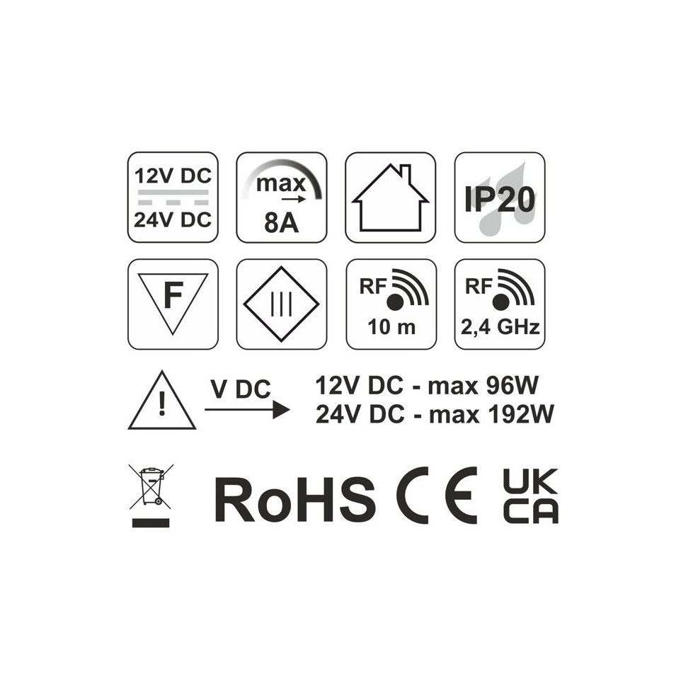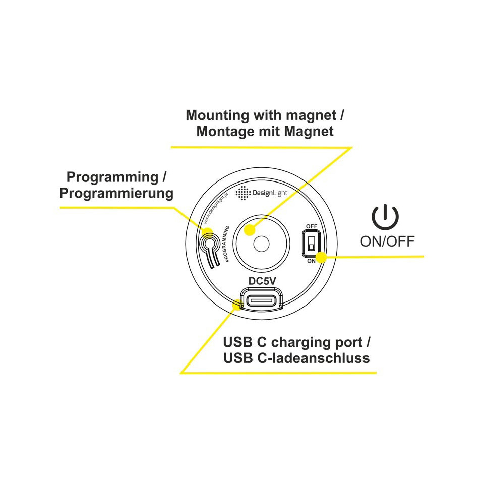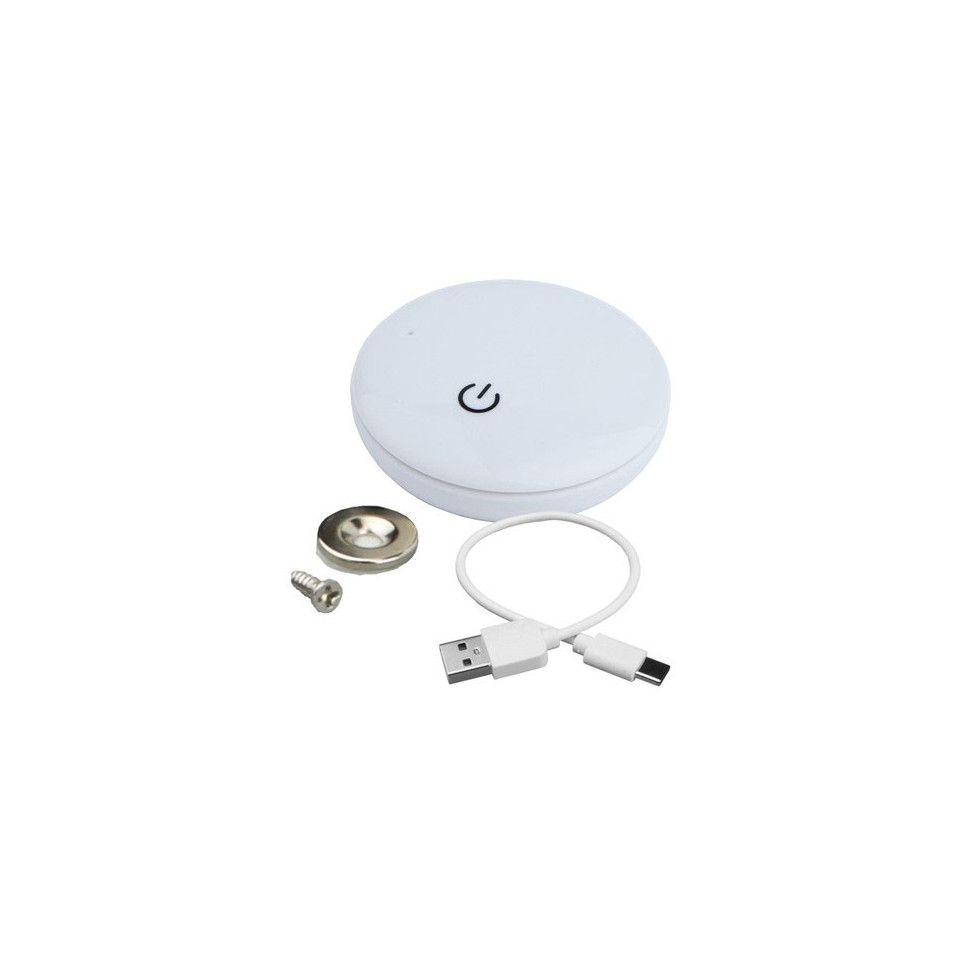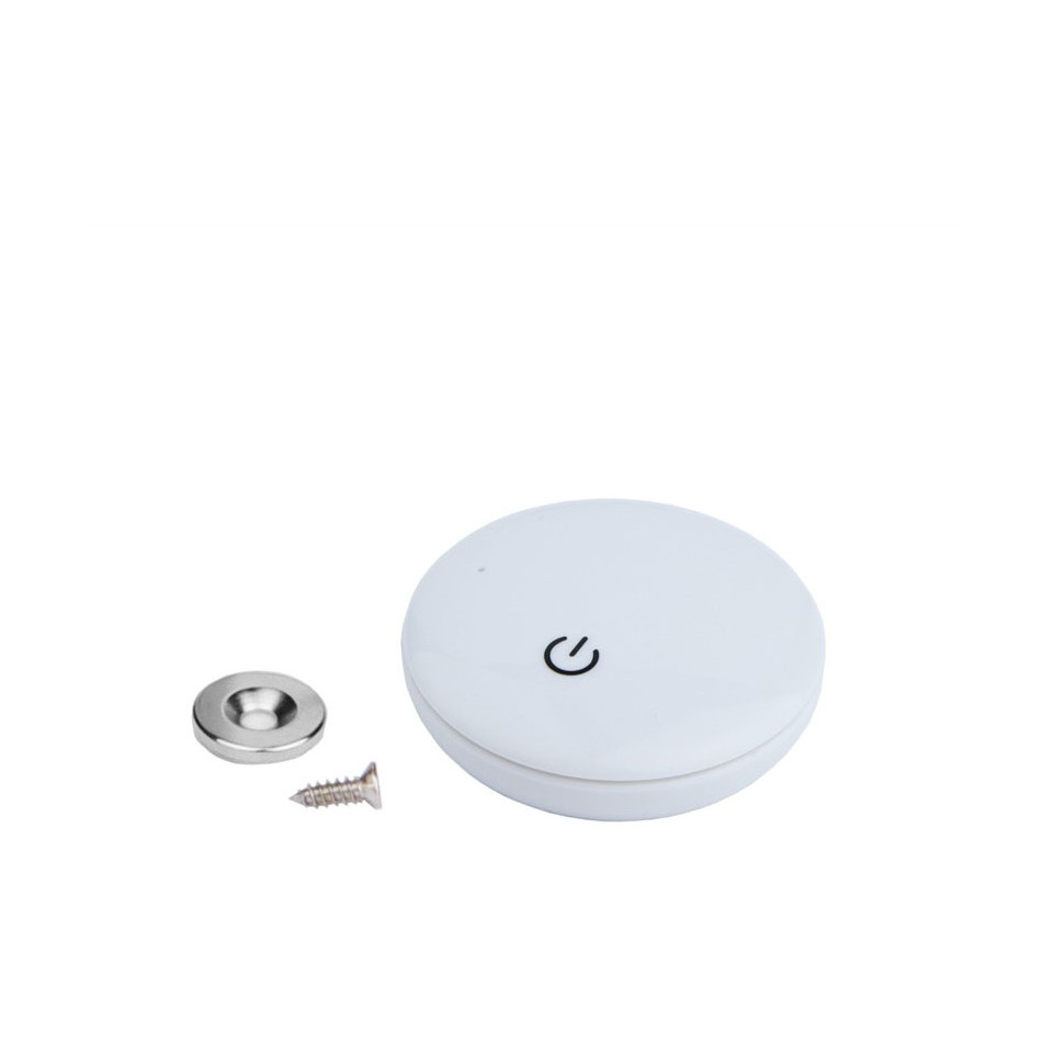 L'interrupteur se fixe sur n'importe quelle surface magnétique sans câblage apparent. Un simple effleurement permet d'allumer, d'éteindre ou de faire varier l'intensité de l'éclairage LED connecté. Il communique par radio avec le contrôleur associé dans un rayon de 10 mètres.
