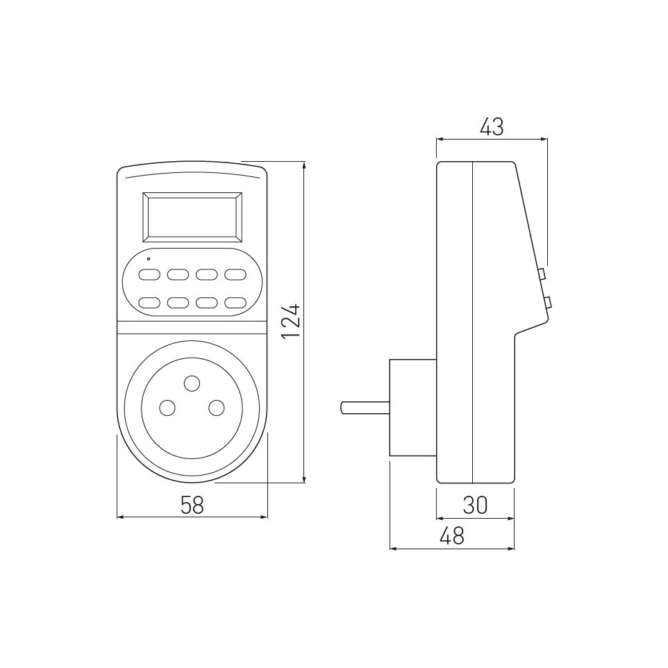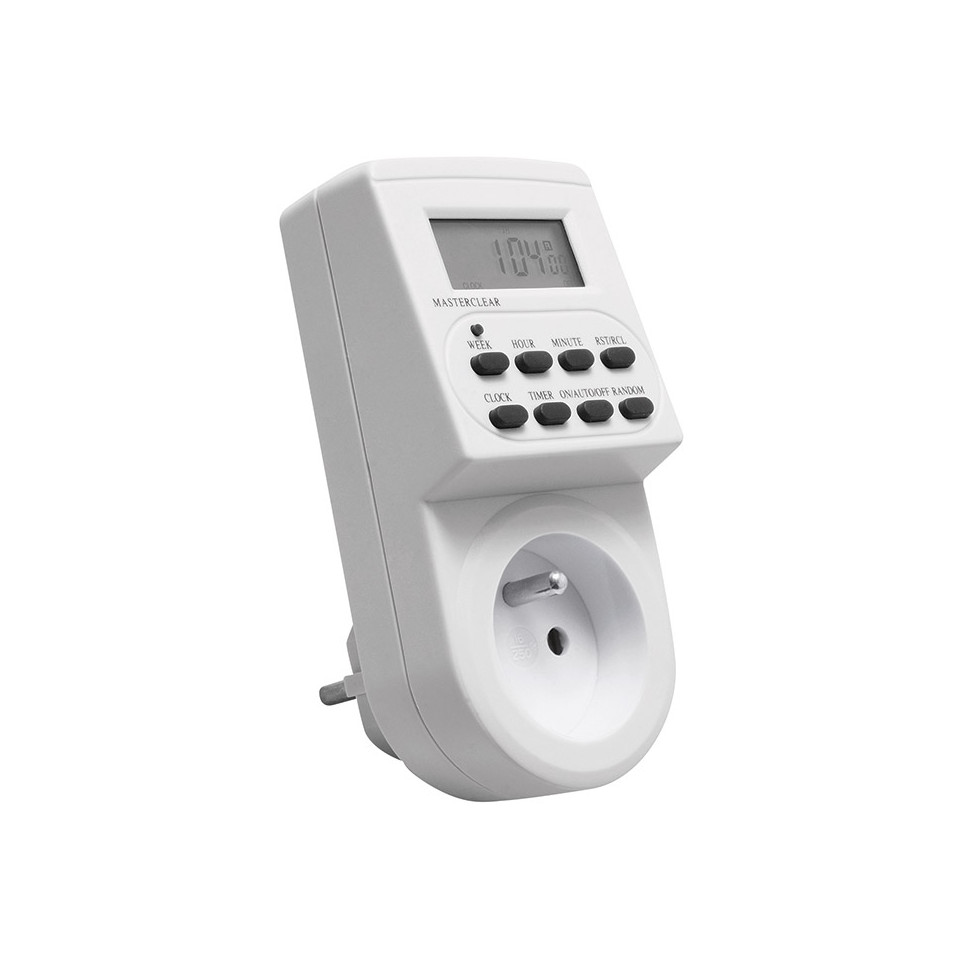 La prise programmable s’insère simplement dans une prise murale standard ; connectez l’appareil souhaité. Définissez les horaires d’activation/désactivation via l’écran LCD. Idéale pour automatiser l’éclairage, les chauffages ou appareils électroménagers, permettant des cycles personnalisés sur 24 heures ou plusieurs jours.