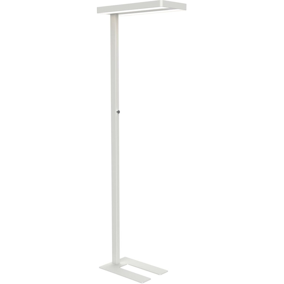 Le lampadaire MAULjaval LED blanc offre un éclairage performant, réglable en continu, idéal pour les bureaux ou espaces de travail nécessitant un équilibre lumineux direct et indirect.