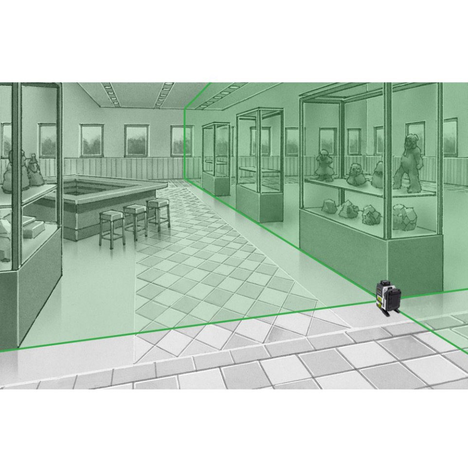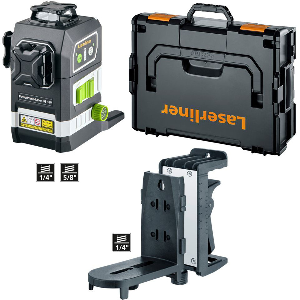 Le PowerPlane-Laser 3G Multi-18V est un laser vert tridimensionnel qui projette un cercle laser horizontal et deux cercles laser verticaux pour un alignement précis des objets dans toute la pièce.