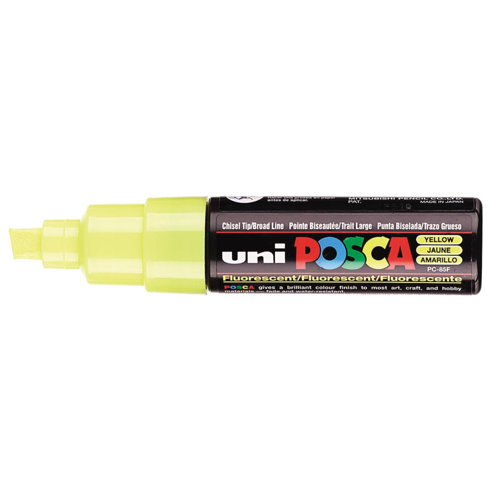 Le marqueur peinture Uni POSCA PC-8K jaune fluo offre une pointe biseautée de 8 mm idéale pour couvrir de larges surfaces, dessiner, écrire ou marquer sur tous types de supports, aussi bien pour les professionnels que les créatifs.