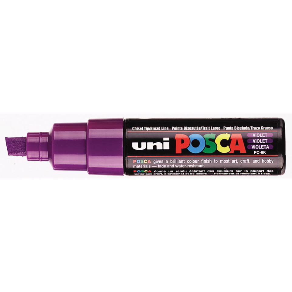 Le marqueur Uni POSCA PC-8K violet, doté d'une pointe biseautée large de 8 mm, permet de peindre, dessiner, écrire et marquer sur toutes surfaces. Il convient aussi bien aux projets artistiques, au bricolage qu'à la décoration.