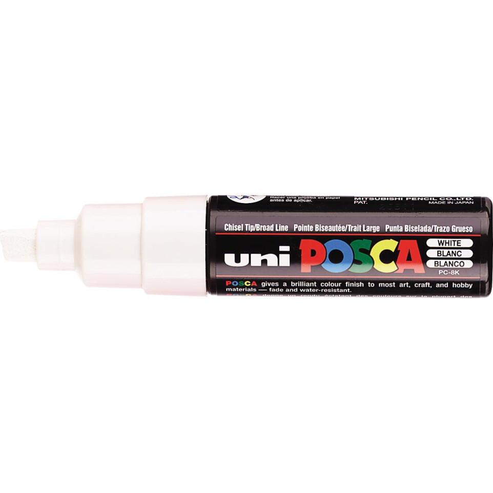 Le Uni POSCA PC-8K est un marqueur peinture à base d’eau doté d’une pointe biseautée large de 8 mm, coloris blanc. Parfait pour peindre, dessiner, écrire ou marquer sur tous types de surfaces, aussi bien pour l’art, la décoration que pour le marquage professionnel.