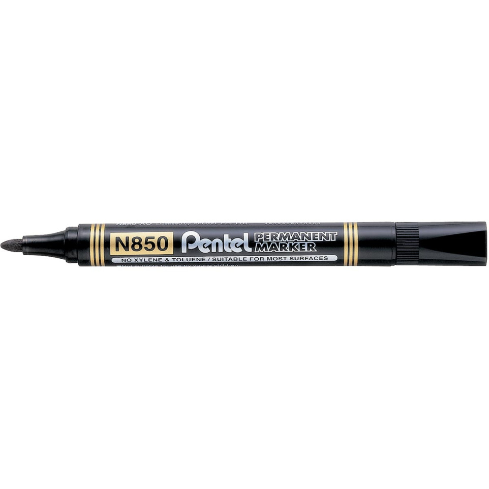 Le Pentel N850-A est un marqueur permanent noir doté d’une pointe ronde permettant un trait uniforme de 4,2 mm. Idéal pour marquer sur presque toutes les surfaces, il offre fiabilité et lisibilité dans l’usage quotidien en bureau, atelier ou logistique.