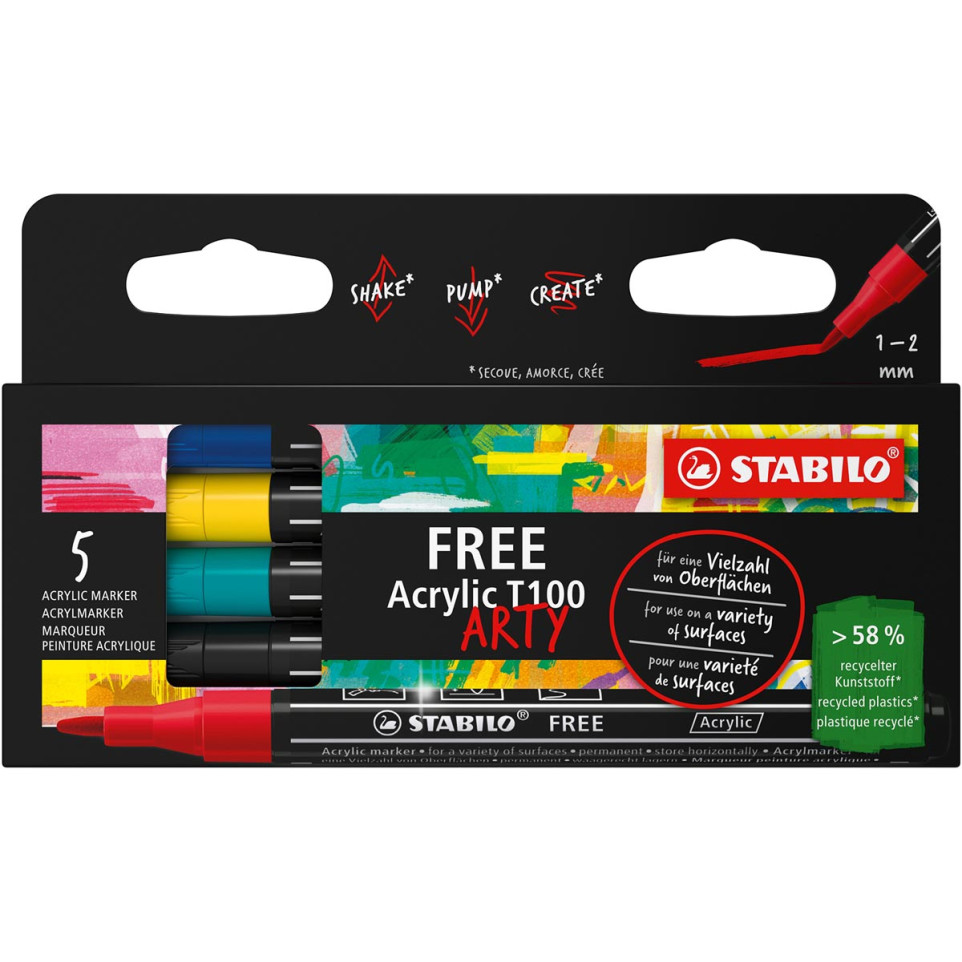 STABILO free marqueur acrylique T100 Royal, pointe ronde, 1-2 mm, couleurs assorties,...