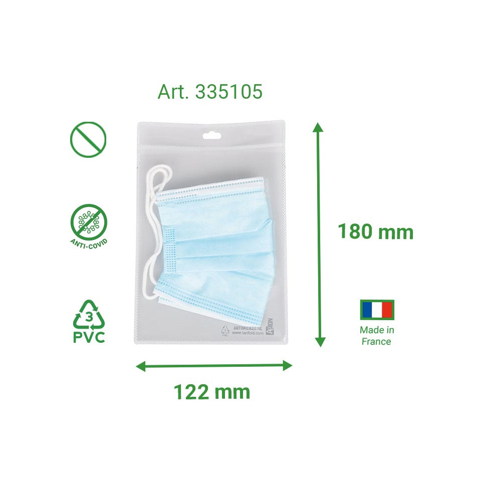 Support antimicrobien Tarifold pour masques buccaux, conçu pour protéger et stocker vos masques de manière hygiénique au quotidien. Idéal pour le transport et la conservation des masques, il est adapté à un usage personnel ou professionnel.