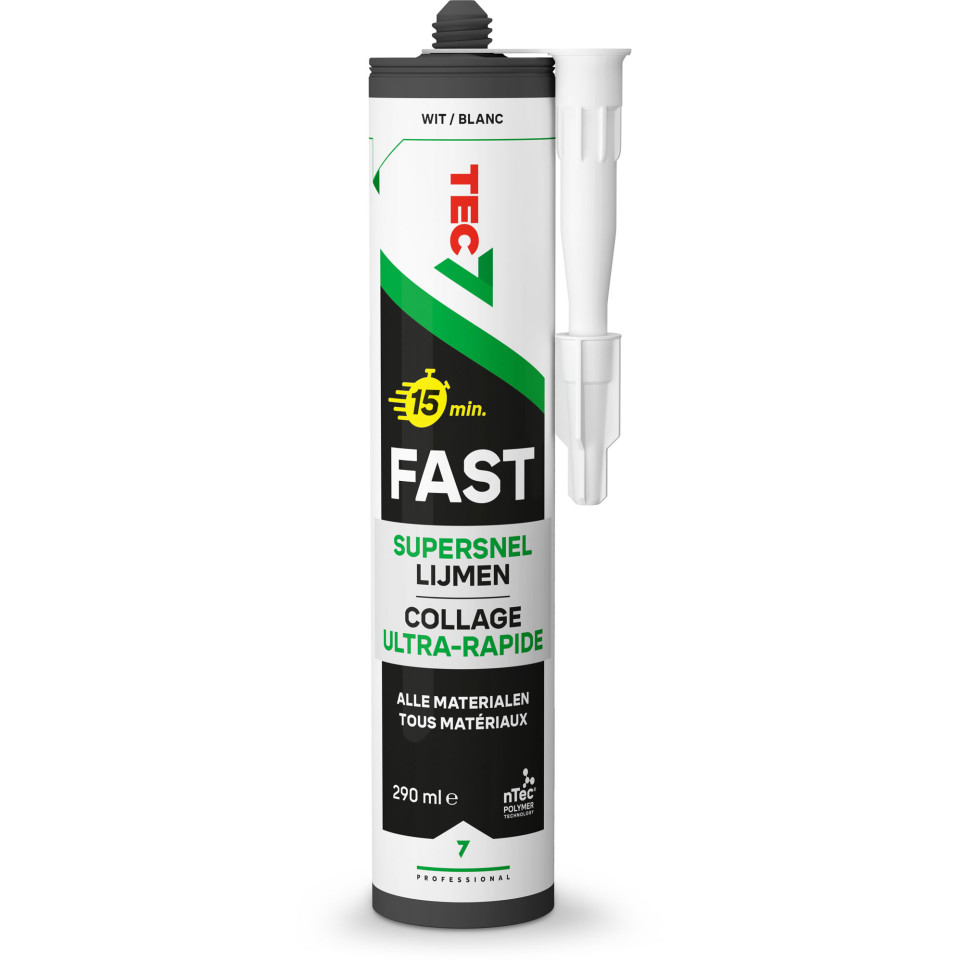 Tec7 Fast Noir est un mastic polymère haute performance en cartouche de 290 ml, conçu pour le collage et l'étanchéité sur une large variété de supports, avec une prise rapide en 15 minutes.