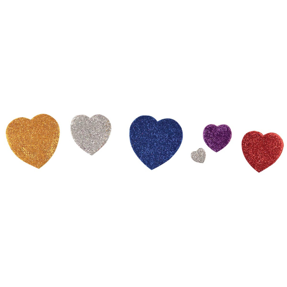 Quels sont les matériaux utilisés pour ces coeurs ? Les coeurs sont fabriqués en mousse EVA autocollante avec une finition pailletée.