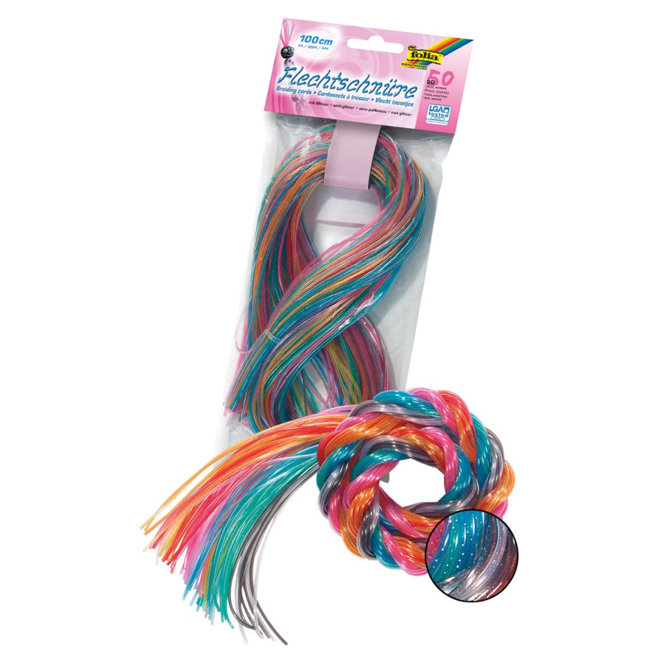 Folia propose un paquet de 50 fils de scoubidou avec paillettes, conçus pour les activités de bricolage créatif. Chaque fil mesure 1 mètre de long et 1,8 mm d’épaisseur, disponibles en 10 couleurs assorties idéales pour réaliser des créations originales.