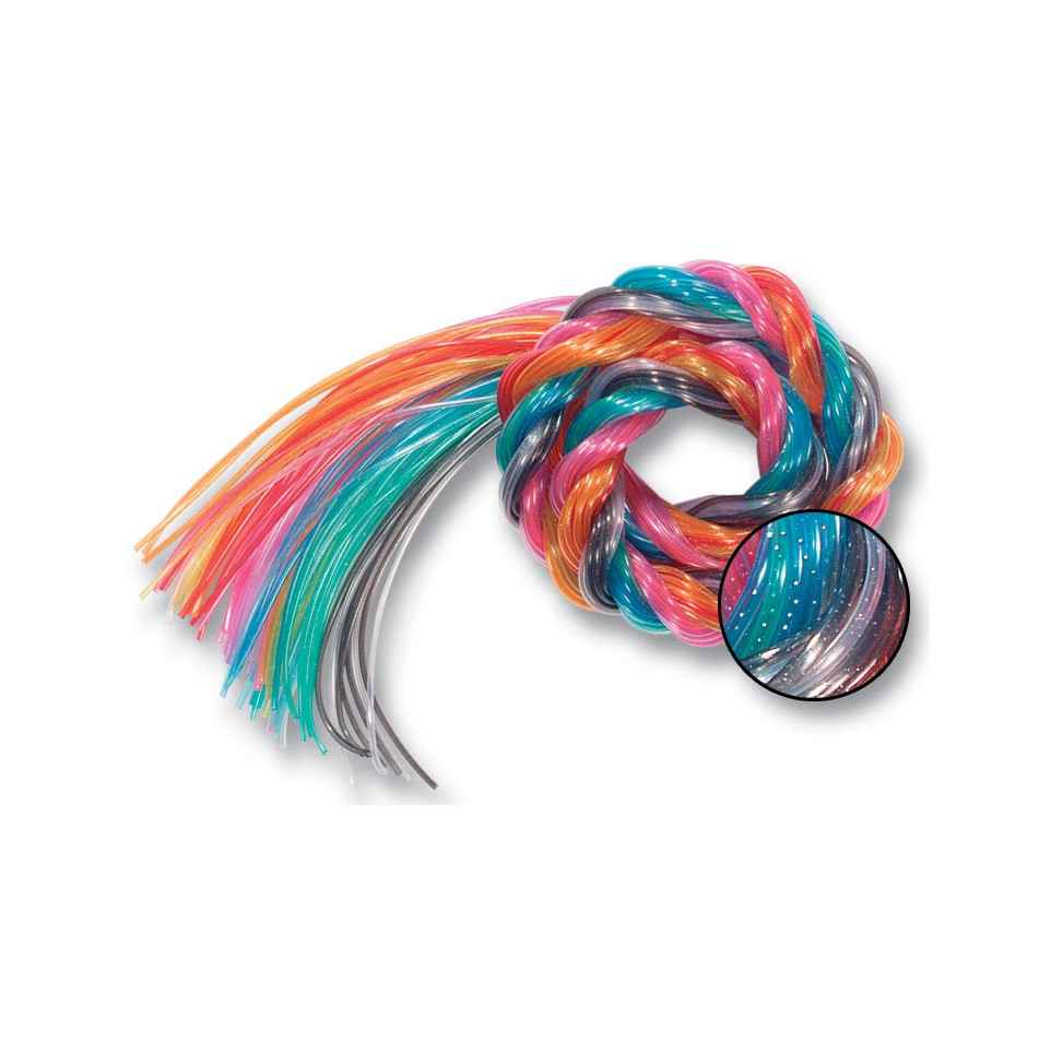 Ces fils de scoubidou s’utilisent pour la fabrication de bracelets, porte-clés, figures ou accessoires de décoration. Il suffit de choisir la couleur, de couper à la longueur voulue puis de tresser ou nouer selon l’inspiration, seul ou en groupe, à l’école ou à la maison.