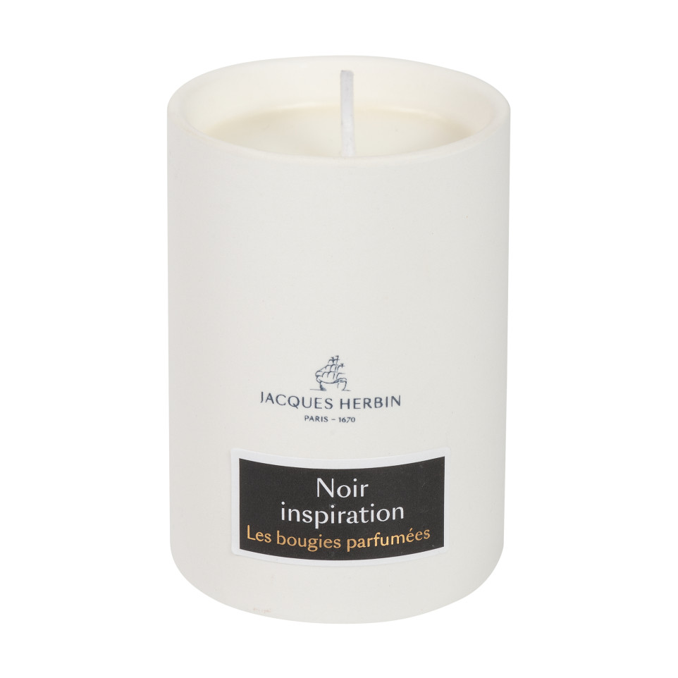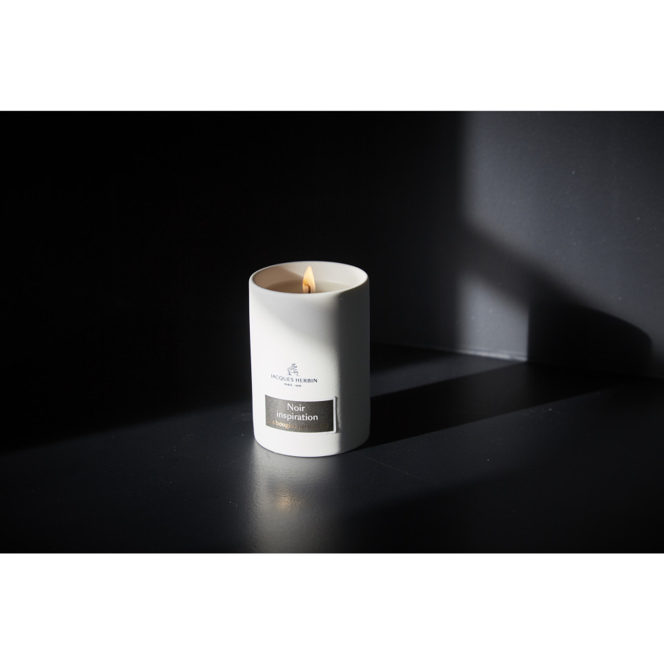 BOUGIE PARFUMEE NOIR INSPIRATION Les bougies Jacques Herbin sont une prolongation des encres parfumées de la collection Prestige. Elles allient le savoir-faire d'un fabricant français à l'élégance de la marque. Le style du contenant, en porcelaine naturelle, est sobre et épuré. Senteur fine aux effluves boisés, fumés de tabac rond avec une subtile union de mousse et de vétiver. Fabriqué en France. Jacques Herbin, plus de 350 de savoir-faire