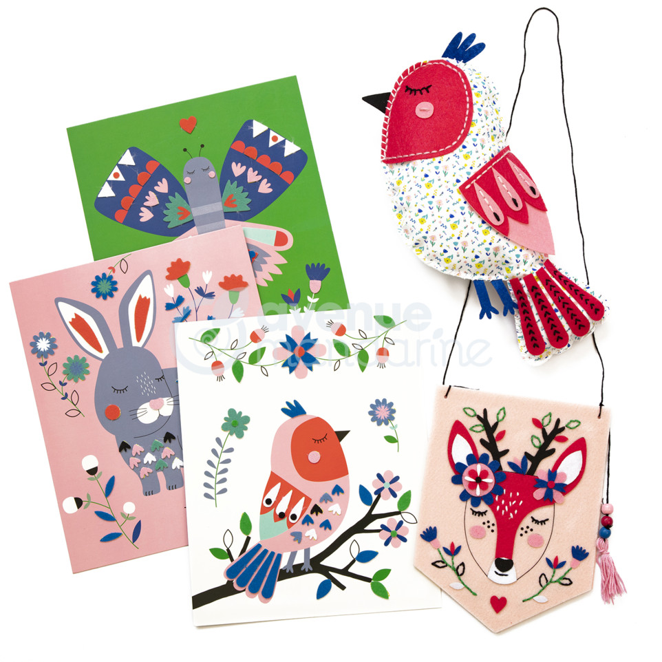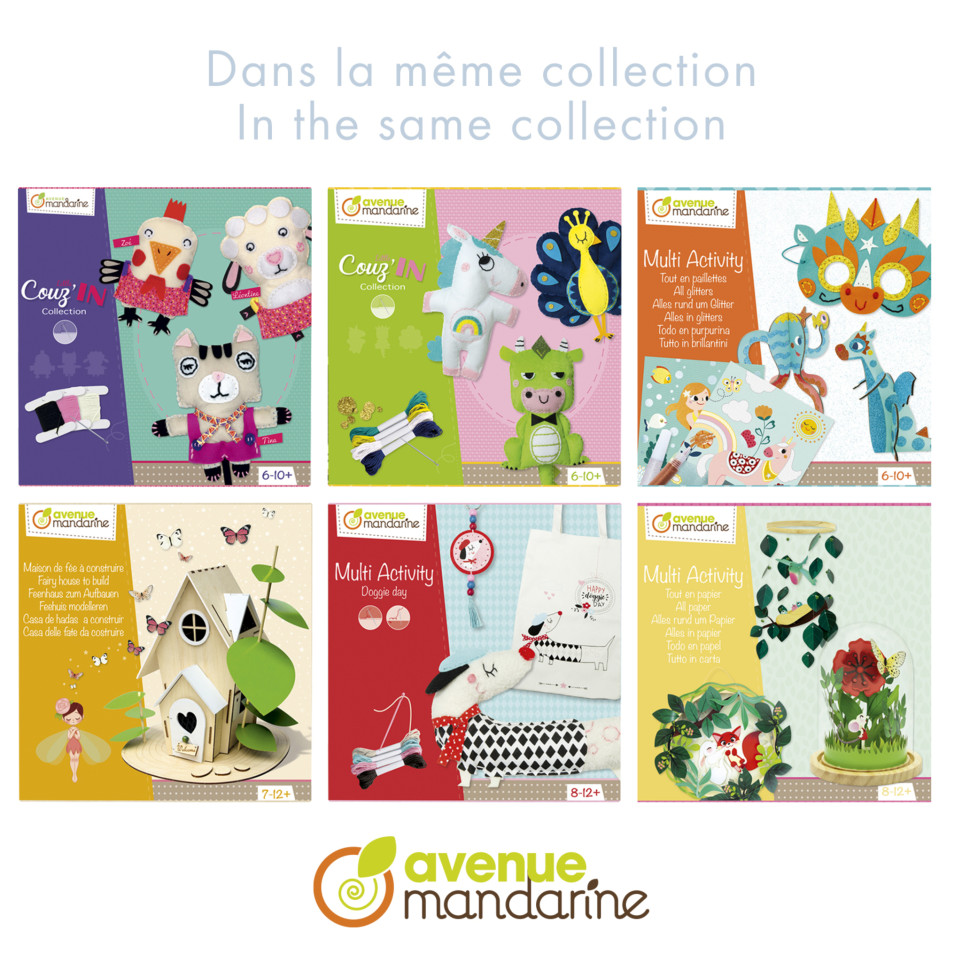 Coffret créatif, Multi Activity, Tout en tissu Découvrez ce coffret proposant 3 activités autour du tissu : un fanion à coudre, des tableaux de gommettes en feutrine et un doudou à coudre. Chaque enfant pourra ainsi stimuler sa curiosité et développer sa créativité. Fanion : Pièces en feutrine pré-découpées, feutrine adhésive, aiguille métallique, fils, dé à coudre, perles en bois. Tableaux de gommettes : 3 tableaux en carton, 1 planche de gommettes en feutrine. Doudou : Eléments de feutrine pré-troués, éléments de feutrine adhésifs, ouate de rembourrage, aiguille en plastique, 2 bobines de fils, éléments en tissu pré-troués. Notice pas à pas incluse.