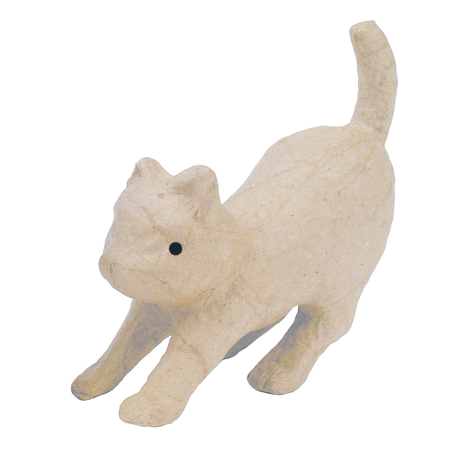 Chat à l'affût En papier mâché brun pulpé, ce support Décopatch est idéal pour être décoré selon vos envies. 1ère possibilité : le recouvrir de la peinture Gesso blanche (non fournie) avant de le peindre aux couleurs de votre choix. 2ème possibilité : le customiser avec le papier Décopatch et notre colle PaperPatch (non fournie). Rien de plus facile : déchirez ou découpez quelques morceaux de papier Décopatch d'environ 2x2 cm - Appliquez la colle sur le support. Déposez un morceau de papier sur la surface encollée et mettre une deuxième couche de colle dessus. Superposez les morceaux de papier pour recouvrir le support en mixant les couleurs et les motifs. 3ème possibilité : le recouvrir de colle PaperPatch (non fournie) puis appliquez nos paillettes Glit's par exemple (non fournies). A vous de jouer ! Un petit animal à customiser fidèle à l'original ou de façon complétement loufouque. Il devient objet de décoration, personnage d'hi stoires à raconter ou simple partenaire de jeu pour votre enfant. Support Décopatch en papier mâché fabriqué à la main. Chaque produit est unique !