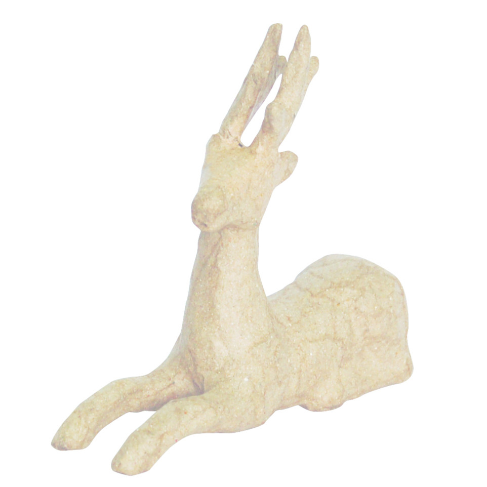 Renne Assis En papier mâché brun, ce support Décopatch est idéal pour être décoré selon vos envies. 1ère possibilité : le recouvrir de la peinture Gesso blanche (non fournie) avant de le peindre aux couleurs de votre choix. 2ème possibilité : le customiser avec le papier Décopatch et notre colle PaperPatch (non fournie). Rien de plus facile : déchirez ou découpez quelques morceaux de papier Décopatch d'environ 2x2 cm - Appliquez la colle sur le support. Déposez un morceau de papier sur la surface encollée et mettre une deuxième couche de colle dessus. Superposez les morceaux de papier pour recouvrir le support en mixant les couleurs et les motifs. 3ème possibilité : le recouvrir de colle PaperPatch (non fournie) puis appliquez nos paillettes Glit's par exemple (non fournies). A vous de jouer ! Un renne à customiser avec votre enfant pour préparer l'arrivée des fêtes. Il pourra ensuite valoriser un chemin de table ou la décoration d'une pièce de vie. Support Décopatch en papier mâché fabriqué à la main. Chaque produit est unique !