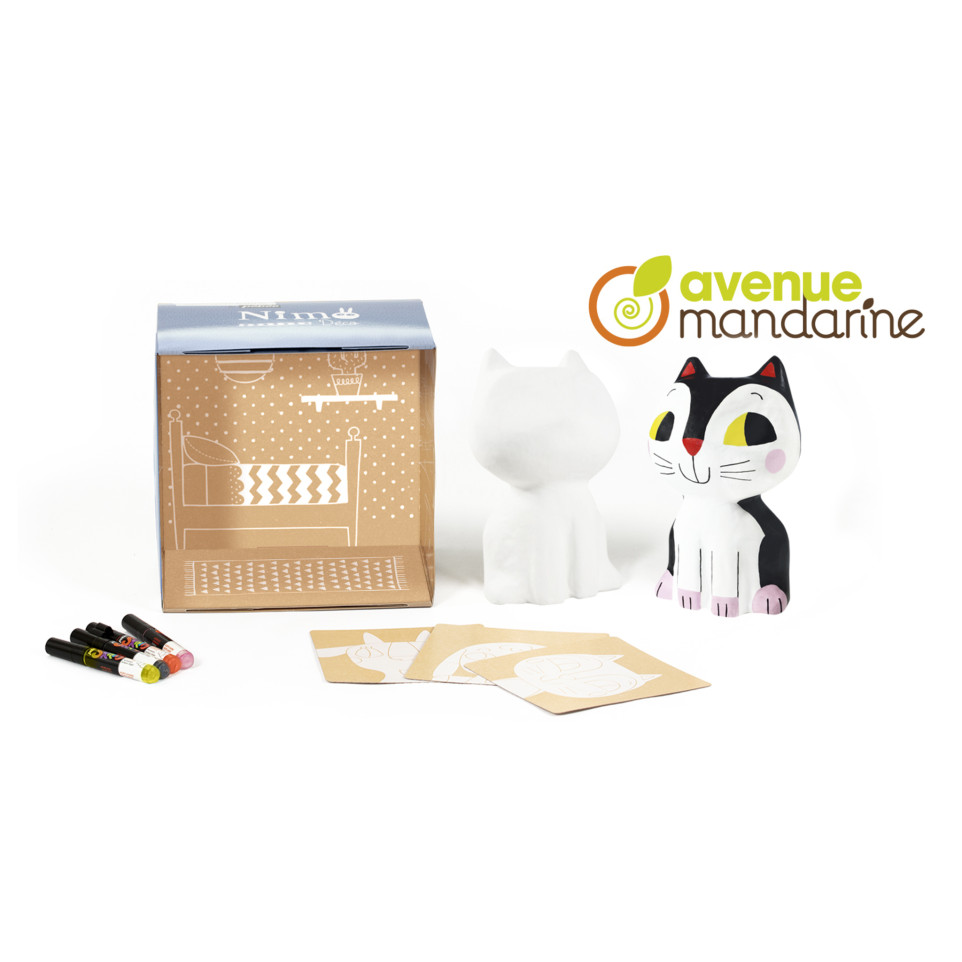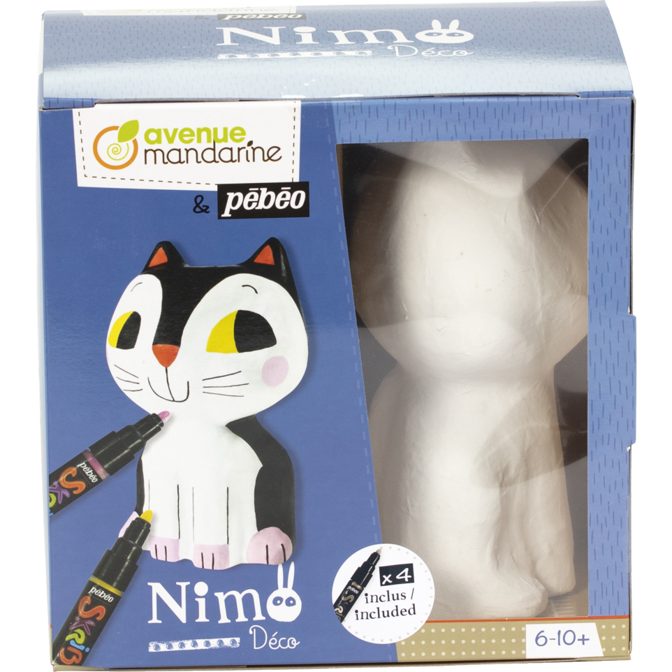 Nimo Déco, Victor le chat Une boite d'activité complète pour les enfants entre 6 et 10 ans, à adopter au plus vite ! Comprend : 1 animal en papier mâché 12x8,5x20,5 cm, 4 feutres skrib Pébéo, 3 tableaux en carton pré-dessinés 14x14 cm et une notice. Coloriez l'adorable chat et ses 3 tableaux. La boite devient sa maison. A conserver précieusement ! Conforme aux normes CE