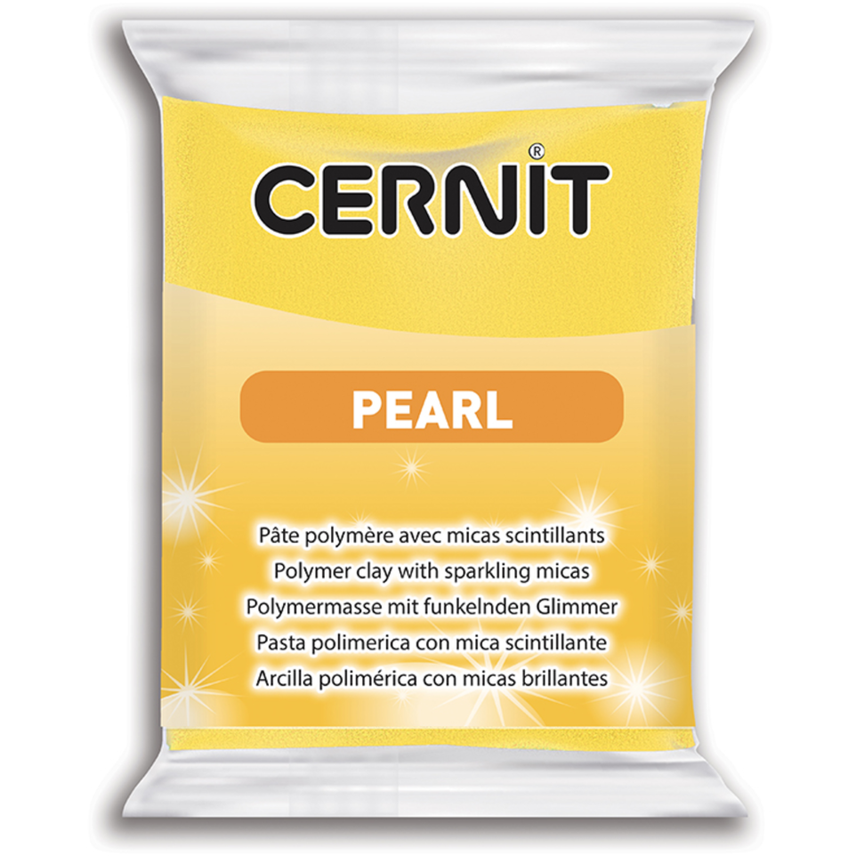 Cernit PEARL 56 g Jaune PEARL : Pâte à modeler à cuire (polymère). Rendu irisé après cuisson. Contient des paillettes épaisses. Permet de faire scintiller tout type de création. CUISSON : Faire cuire la pâte entre 110°C (230°F) et 130°C (266°F) dans un four traditionnel pendant 30 minutes maximum. Sans odeur à la cuisson. Ne se fissure pas. Ne pas utiliser de four micro-ondes. Après cuisson, la pâte est dure mais peut encore être travaillée (poncée, peinte, etc.) CARACTÉRISTIQUES : Ne sèche pas. Après cuisson, la pâte est complètement solide mais reste flexible. Sans odeur, la pâte est agréable à travailler et reste malléable à l'infini. Elle ne déteint pas ni sur les mains, ni sur les outils. Toutes les couleurs peuvent se mélangées afin d'obtenir la teinte souhaitée. Végan. UTILISATIONS : Idéales pour créer des bijoux, des reproductions, des miniatures, des personnages etc. Toujours travailler la pâte avec les mains propres sur une surface préalablement nettoyée. Malaxer la pâte pour la rendre plus souple avant d'être travaillée. Elle peut être sculptée, moulée, imprimée ou utilisée avec d'autres matériaux comme des pierres, perles, plumes. Possibilité de rajouter des additifs comme des paillettes, de l'encre à alcool etc. à l'intérieur de la pâte avant cuisson. POIDS : 56g. FABRICATION : Toutes les pâtes à modeler à cuire Cernit sont fabriquées en Belgique, près de Liège.