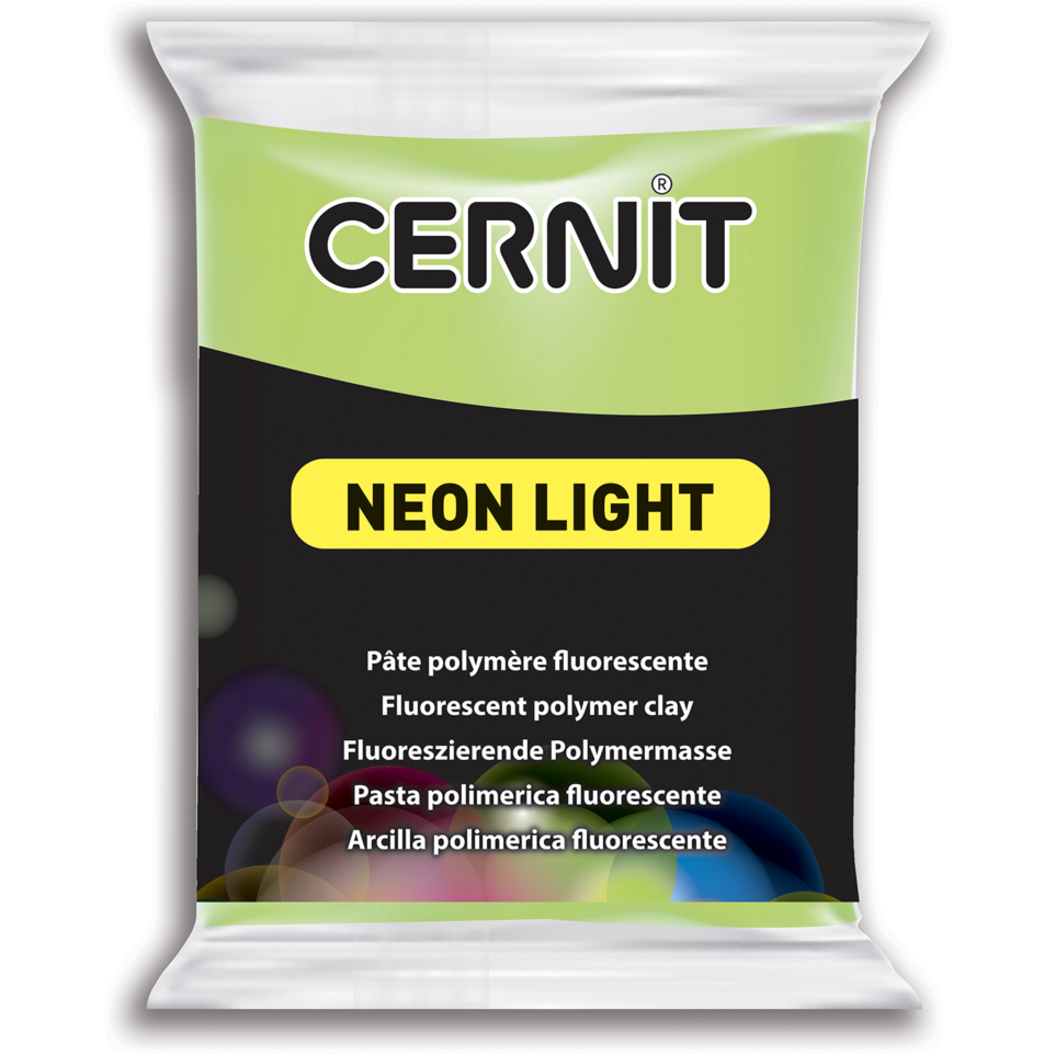 Cernit NEON LIGHT 56 g Vert NEON LIGHT : Pâte à modeler à cuire (polymère). Complètement opaque après cuisson. Les couleurs restent vives, lumineuses, fluorescentes. Sous la lumière bleue, les teintes sont phosphorescentes. CUISSON : Faire cuire la pâte entre 110°C (230°F) et 130°C (266°F) dans un four traditionnel pendant 30 minutes maximum. Sans odeur à la cuisson. Ne se fissure pas. Ne pas utiliser de four micro-ondes. Après cuisson, la pâte est dure mais peut encore être travaillée (poncée, peinte, etc.). CARACTÉRISTIQUES : Ne sèche pas. Après cuisson, la pâte est complètement solide mais reste flexible. Sans odeur, la pâte est agréable à travailler et reste malléable à l'infini. Elle ne déteint pas ni sur les mains, ni sur les outils. Toutes les couleurs peuvent se mélangées afin d'obtenir la teinte souhaitée. Végan. UTILISATIONS : Idéales pour créer des bijoux, des reproductions, des miniatures, des personnages etc. Toujours travailler la pâte avec les mains propres sur une surface préalablement nettoyée. Malaxer la pâte pour la rendre plus souple avant d'être travaillée. Elle peut être sculptée, moulée, imprimée ou utilisée avec d'autres matériaux comme des pierres, perles, plumes. Possibilité de rajouter des additifs comme des paillettes, de l'encre à alcool etc. à l'intérieur de la pâte avant cuisson. POIDS : 56g. FABRICATION : Toutes les pâtes à modeler à cuire Cernit sont fabriquées en Belgique, près de Liège.
