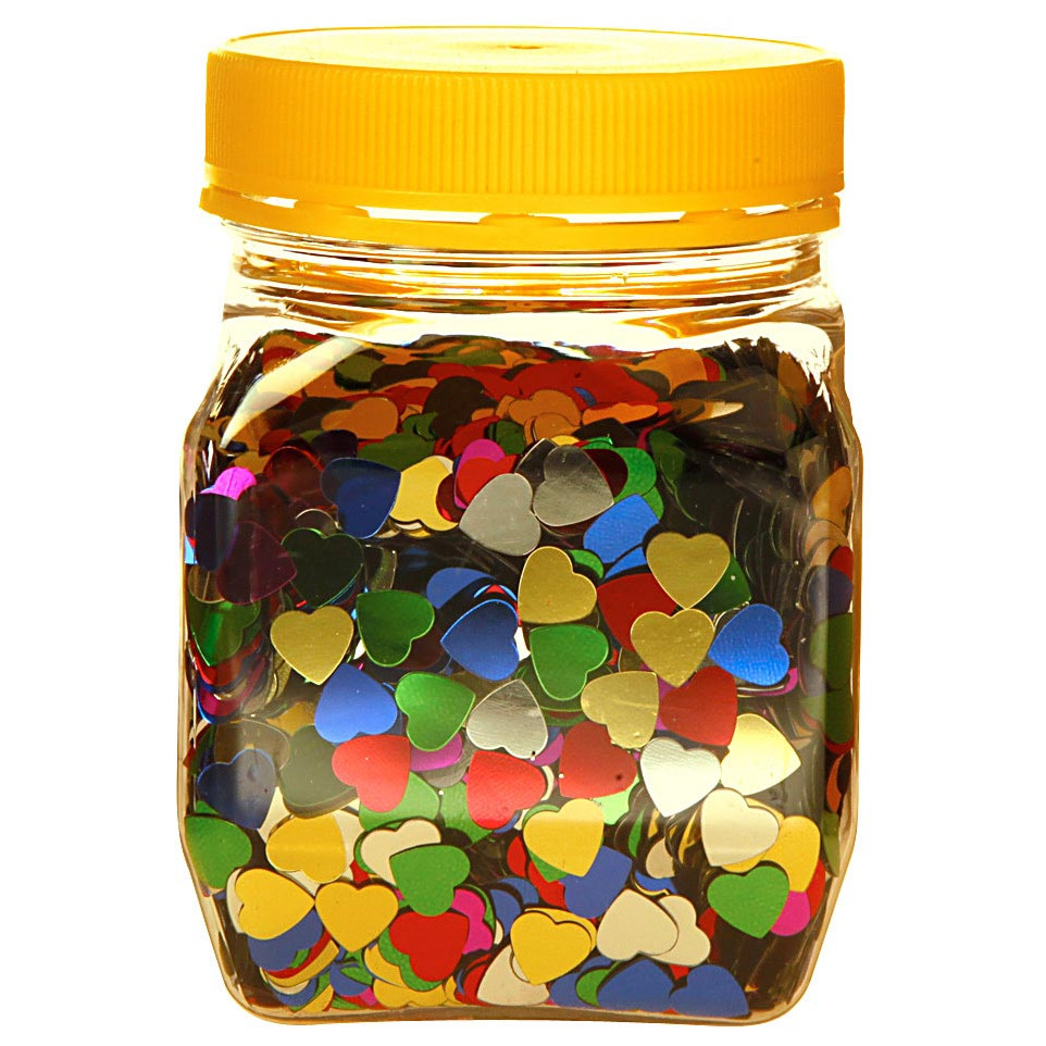 Pot de confetti en forme de cœurs, diamètre 6 mm, conditionné en pot de 160 g. Idéal pour les activités de bricolage et la décoration lors d’événements festifs ou d’ateliers créatifs.
