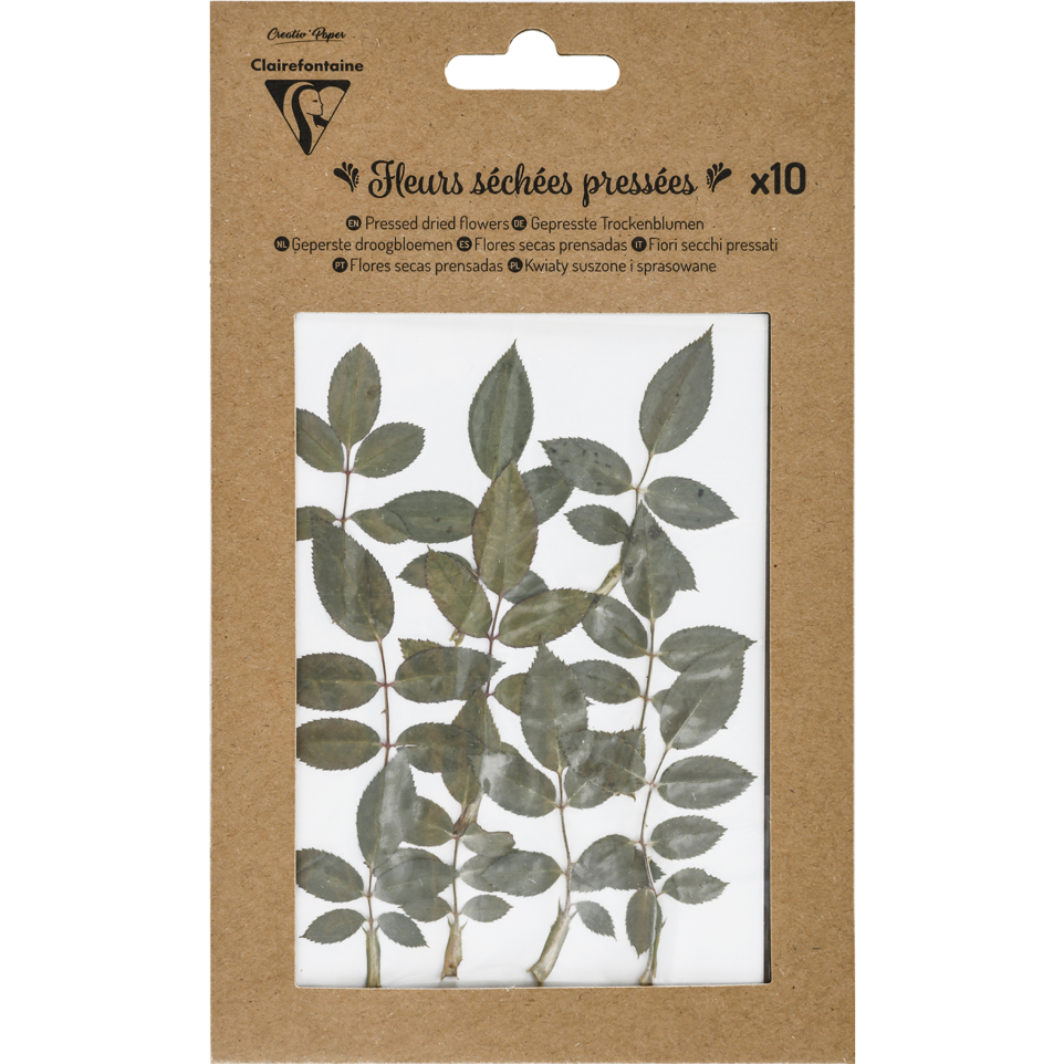 FLEURS SÉCHÉES PRÉSSÉES, Pochette de 10 pièces - Feuilles arrondies/ Pce