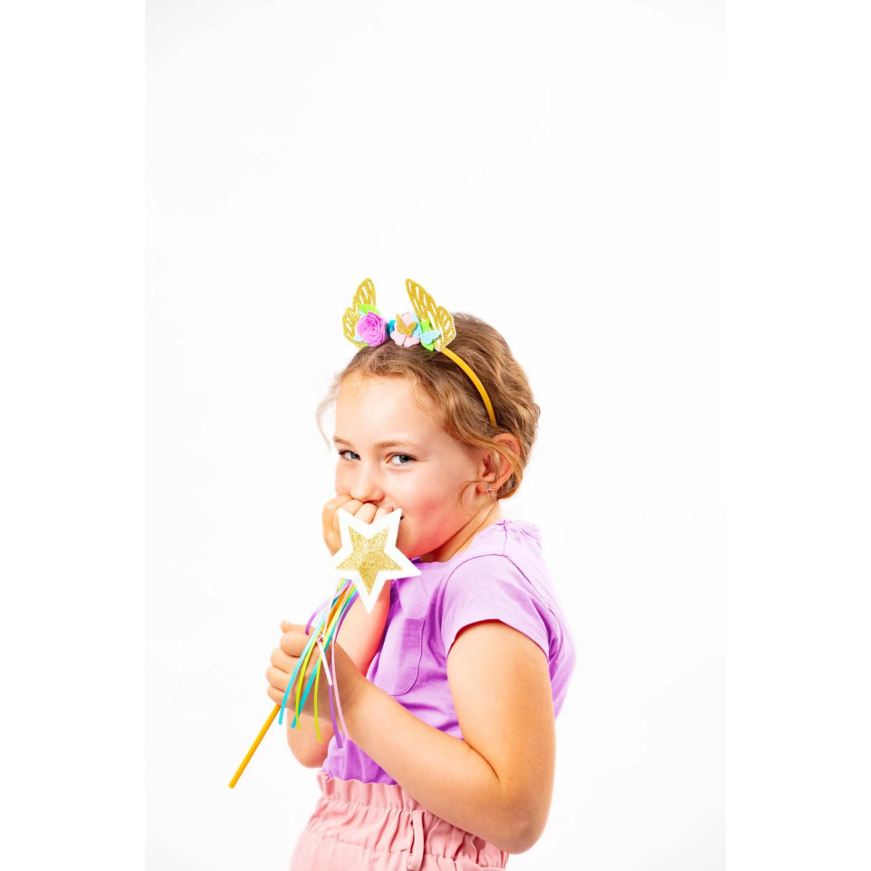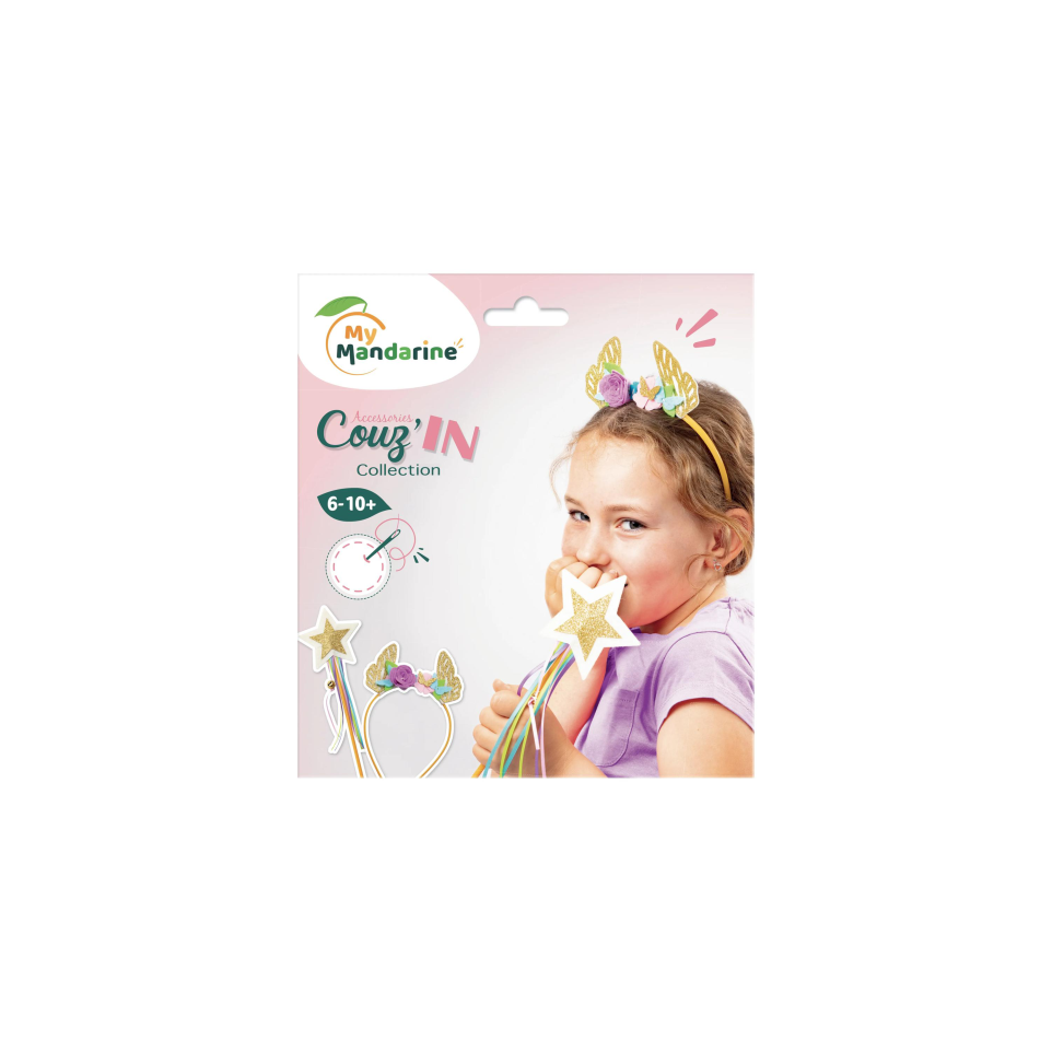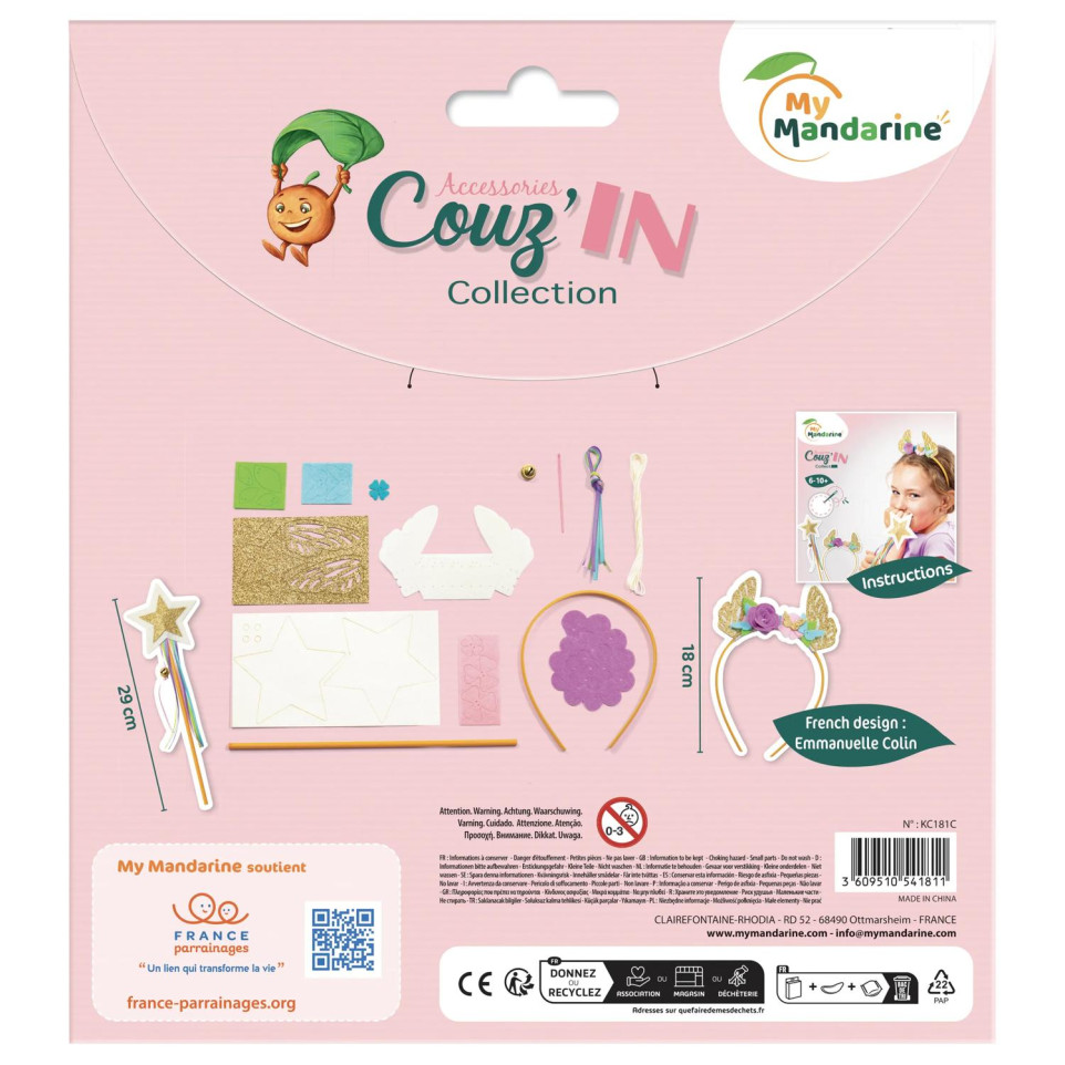 Kit déguisement à coudre, Fée DEGUISEMENT : Il suffit de coudre et de placer les différents éléments suivant la notice et le tour est joué ! Votre enfant a fabriqué son serre-tête et sa baguette magique de fée ! CONTENU : 1 serre-tête et une baguette magique, éléments de feutrine prédécoupés (pré-trouée ou adhésive), du fil, 1 clochette, des rubans, 1 aiguille plastique, et une notice. EFFETS RELAXANTS : la couture a un effet hypnotique qui relaxe les enfants, améliore leur concentration et leur motricité IDEE CADEAU : vous pouvez offrir ce kit comme cadeau à vos enfants ou à des amis, pour un anniversaire, Noël, ou d'une simple activité détente. CONFORMES AU NORMES CE - À partir de 7 ans