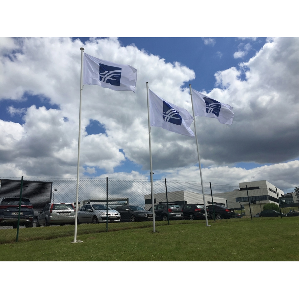 Il est possible de personnaliser les drapeaux avec une impression simple ou double face, et de choisir entre plusieurs accessoires et finitions pour le mât.