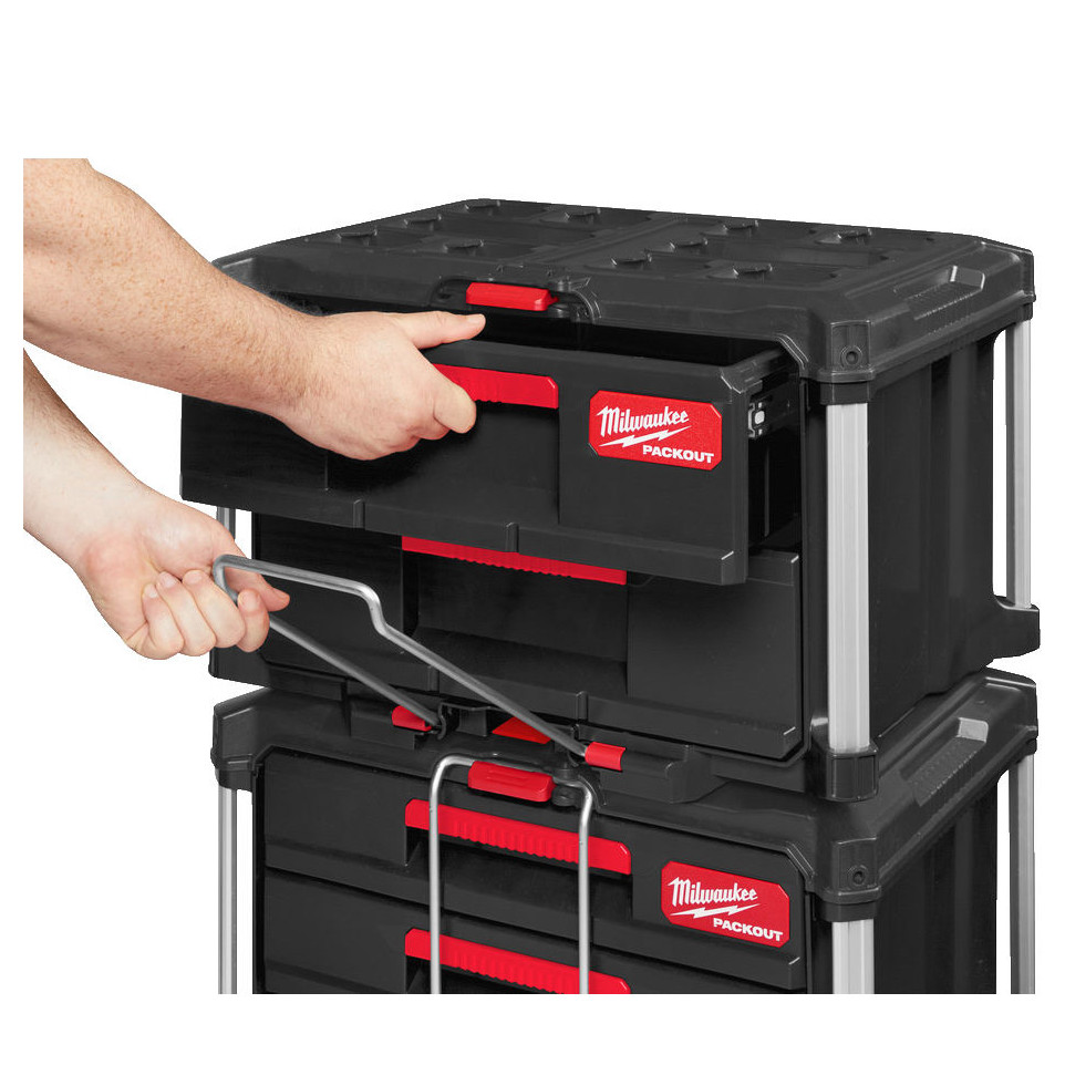 Le coffre Packout 2 tiroirs Milwaukee est une unité de rangement modulaire conçue pour organiser et sécuriser vos outils sur les chantiers. Il s’intègre parfaitement dans le système Packout de Milwaukee et offre un accès rapide à son contenu, même lorsqu’il est positionné en bas d’une pile.