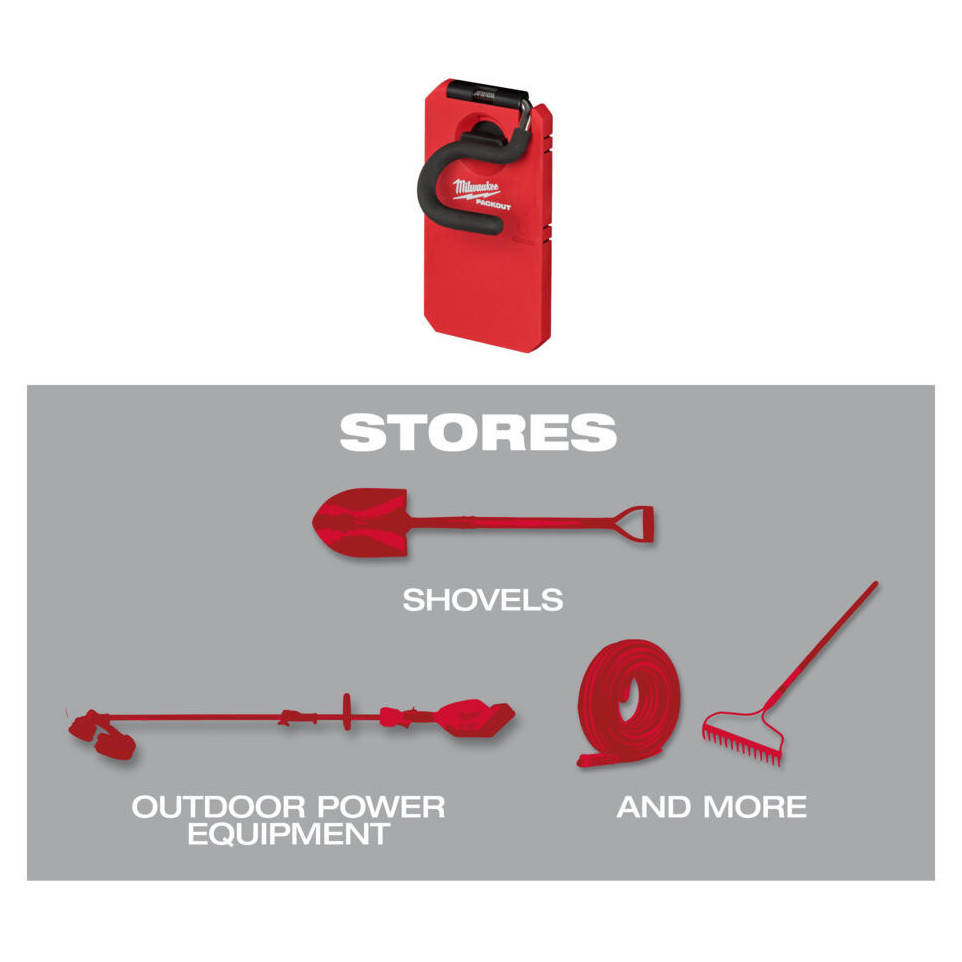 Le Crochet de rangement en S Milwaukee Packout est conçu pour organiser et stocker les machines et outils lourds dans un atelier ou sur un chantier, grâce à sa fixation sécurisée sur les panneaux de la gamme PACKOUT Shop Storage.