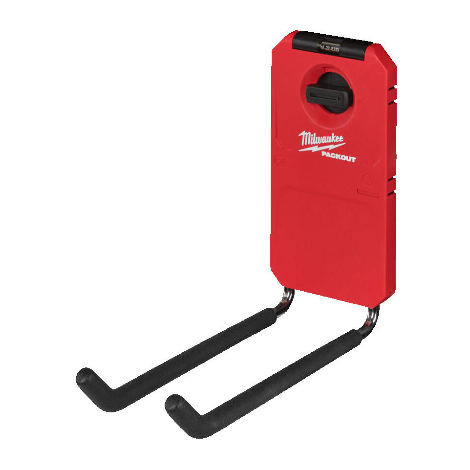 Le Crochet de rangement renforcé Milwaukee Packout est conçu pour organiser et stocker les machines et outils lourds dans un atelier ou sur un chantier, offrant un accès rapide et sécurisé.
