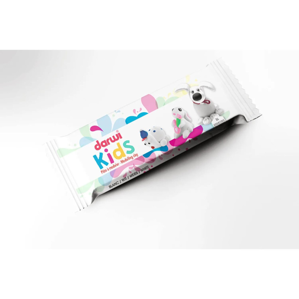 DARWI Pain de 1 kg de pâte auto-durcissante KIDS blanche La pâte auto-durcissante est un des matériaux le plus polyvalent dans le domaine des activités artistiques et des loisirs créatifs pour réaliser des modelages sans limite de créativité. Elle s'adresse à des artistes de tous âges pour réaliser des oeuvres en atelier ou à la maison. Prêtes à l'emploi et agréables au toucher, ces pâtes Darwi offrent des textures fines et souples qui permettent une manipulation facile et précise. Séchant à l'air libre en 24 heures par centimètre d'épaisseur, elles garantissent des résultats solides et durables sans nécessiter de cuisson. Formulées pour répondre aux exigences de qualité et de sécurité, nos pâtes autodurcissantes sont naturelles, non toxiques, sans gluten et vegan, ce qui les rend idéales pour des créations respectueuses de l'environnement et adaptées à tous les publics. Inodores et conçues pour ne pas se rétracter au séchage, elles assurent un rendu fidèle et professionnel. De plus, elles adhèrent parfaitement à de nombreux matériaux comme le bois, le métal, le carton ou la céramique, élargissant ainsi vos possibilités créatives. Mode d'emploi : Les pâtes à modeler DARWI peuvent être travaillées sur n'importe quelle surface dure. Toujours veiller à nettoyer le plan de travail après usage. Conserver les pâtes bien emballées dans un sachet plastique ou un récipient hermétiquement fermé pour éviter qu'elles durcissent. Garder à température ambiante. Lorsque les pâtes sont trop sèches, qu'elles ont perdues de leur élasticité, les humidifier avec les mains mouillées. Lorsque les pâtes sont trop humides, qu'elles restent collées au support, qu'elles se déchirent en les manipulant, les laisser sécher à l'air libre pendant 1 heure ou plus. Les pâtes doivent être ni trop sèches, ni trop humides pour être travaillées dans des conditions optimales. Nettoyer les outils de modelage à l'eau.