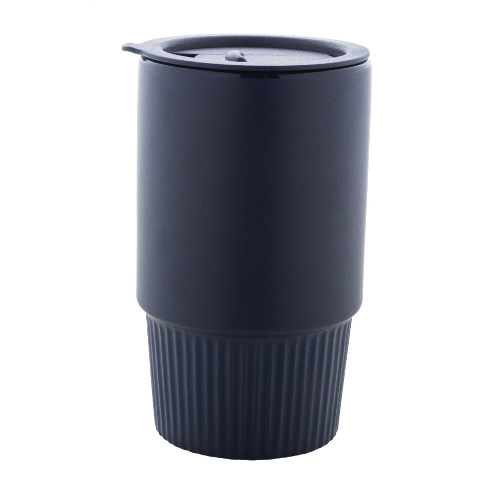 Mug de voyage en céramique de haute qualité, finition extérieure mate bleu foncé, doté d’un couvercle en plastique PP. Idéal pour transporter boissons chaudes ou froides au bureau, en déplacement ou lors d’activités extérieures.