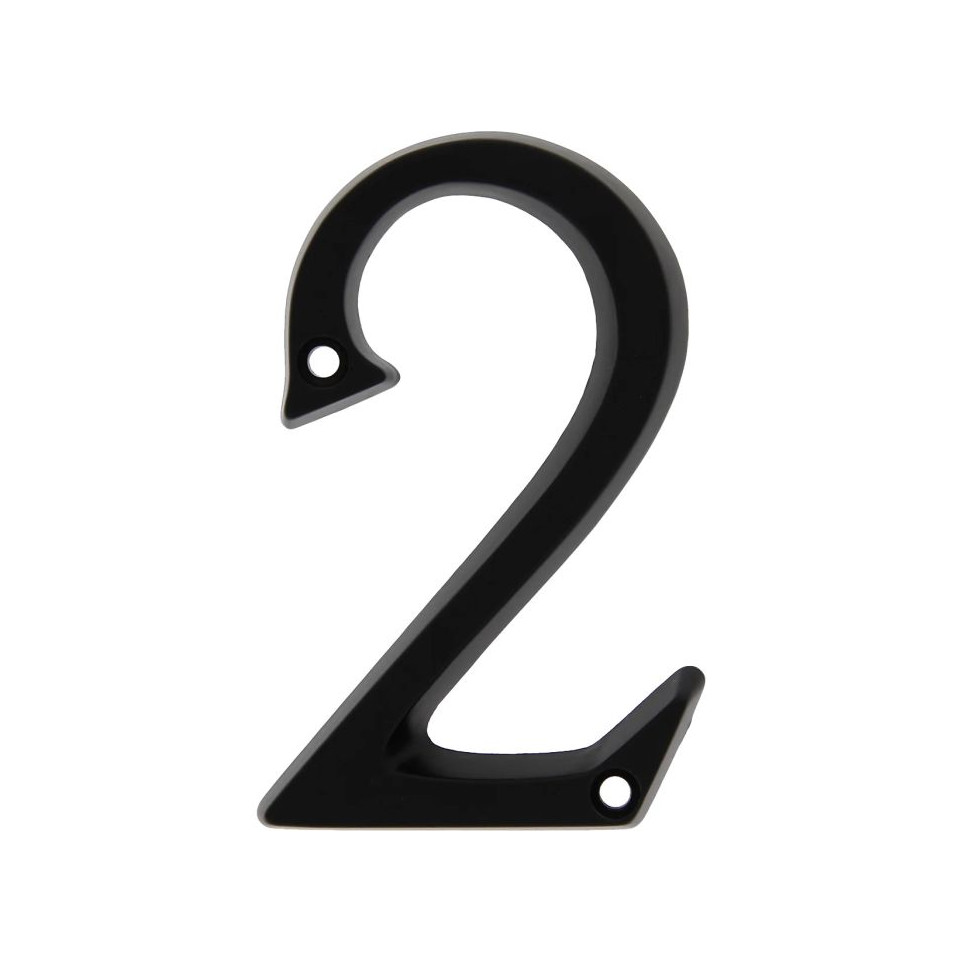 Chiffre de maison '2' en aluminium noir, hauteur 95 mm, conçu pour le marquage clair et élégant des adresses sur façades résidentielles ou commerciales.