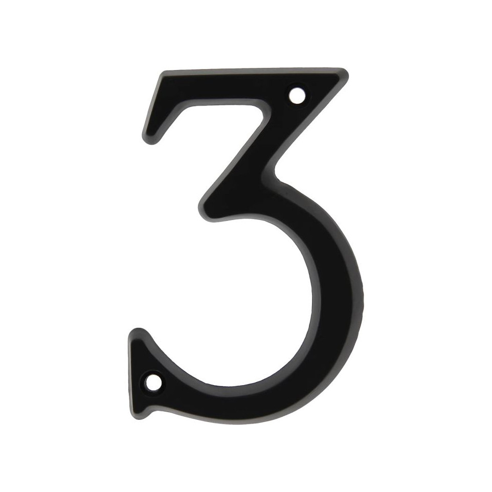 Chiffre de maison « 3 » en aluminium noir, hauteur 95 mm, conçu pour identifier clairement et durablement une habitation ou un bâtiment résidentiel.
