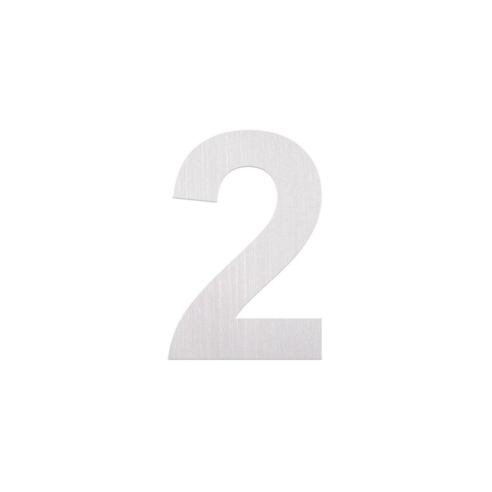 Chiffre inox à coller "2" de 80 mm, destiné à la signalisation extérieure comme numéro de maison ou d’appartement. Idéal pour une identification claire et durable des bâtiments.
