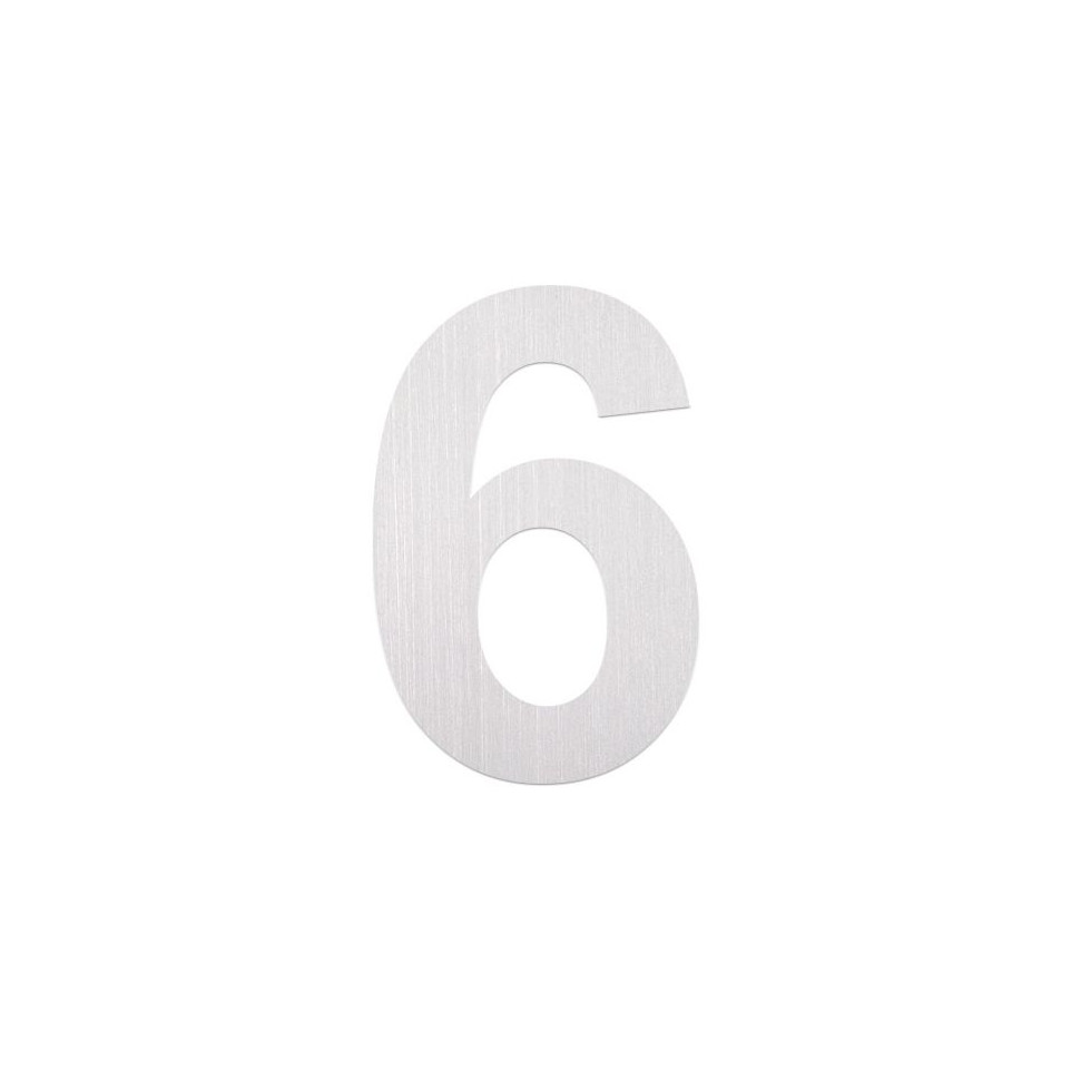 Chiffre inox à coller “6” de 80 mm de hauteur, conçu pour identifier clairement une maison, un appartement ou un local professionnel sur une surface plane et propre.