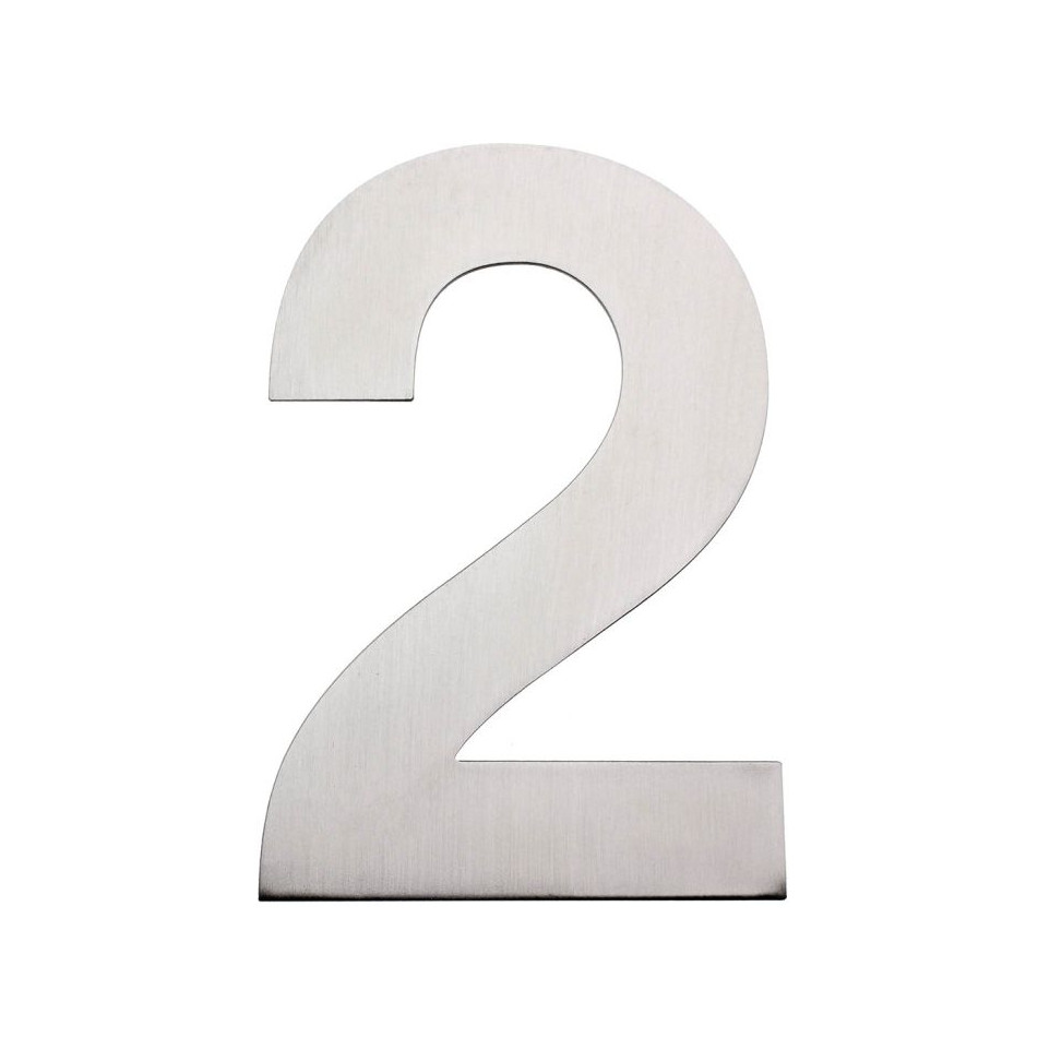 Chiffre plat en inox brossé de 155 mm, numéro 2, conçu pour l’identification claire et durable des maisons ou bâtiments. Idéal pour une installation extérieure, il s’adapte à tout type de façade.