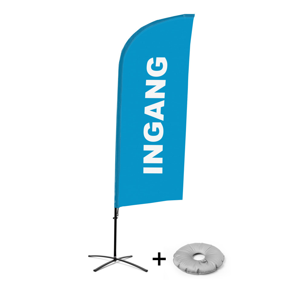 L'ensemble complet de Beach Flag Alu Wind Entrée Bleu est idéal pour promouvoir votre marque ou événement lors d'activités extérieures comme les foires, plages ou zones commerciales.